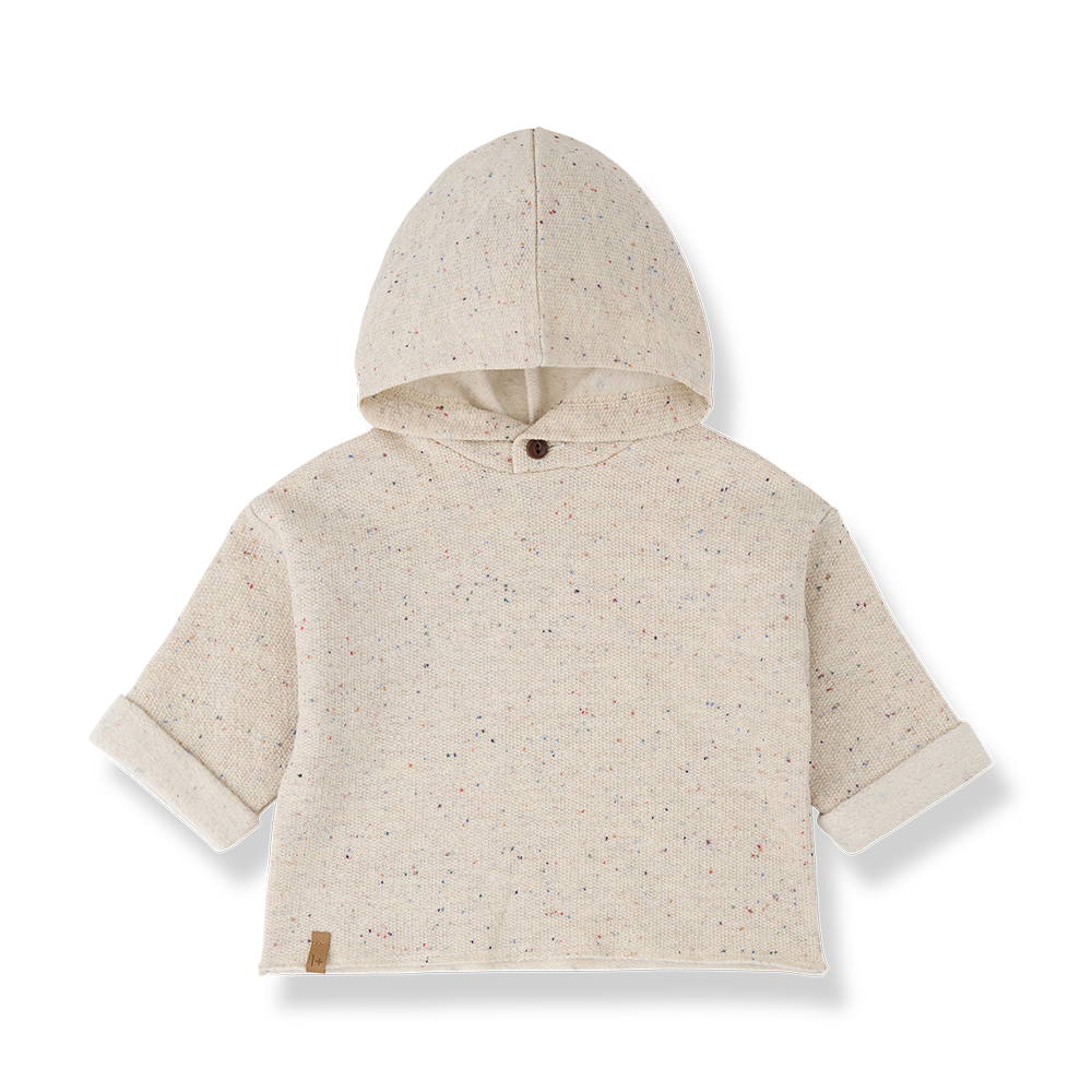 1+ In The Family top l/s speckled french terry sweater with hood - rice