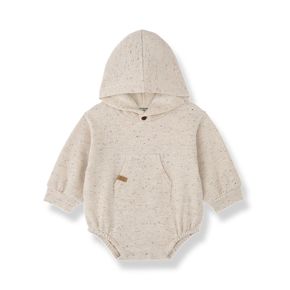 1+ In The Family one piece speckled french terry romper with hood - rice