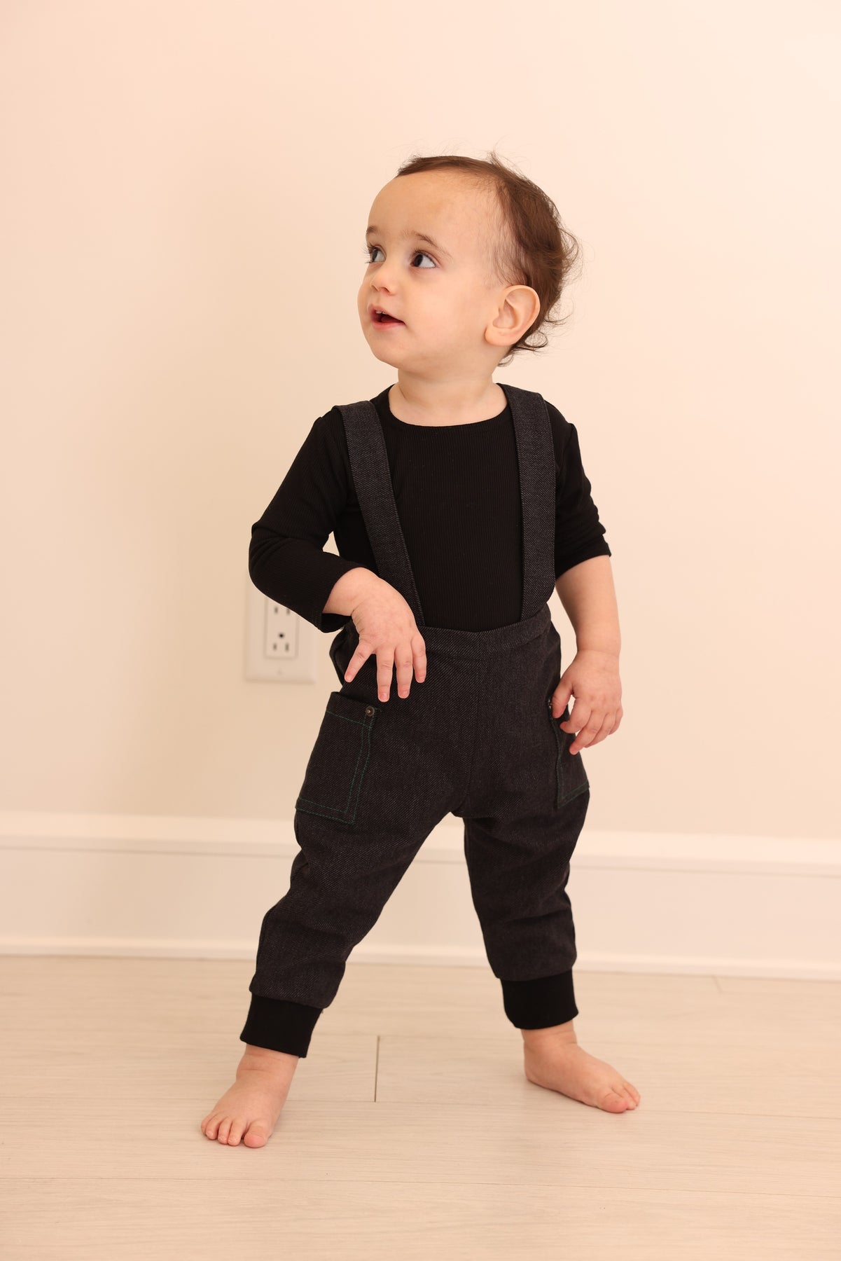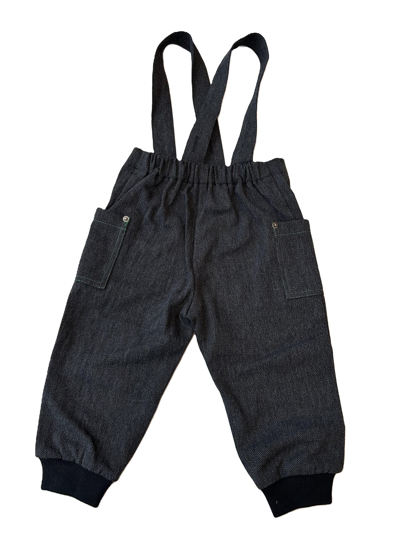 one piece denim corduory overall with contrast stitching - black denim/green