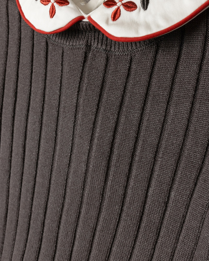 One Child set outfit cable knit crewneck with embroidered collar and leggings - charcoal