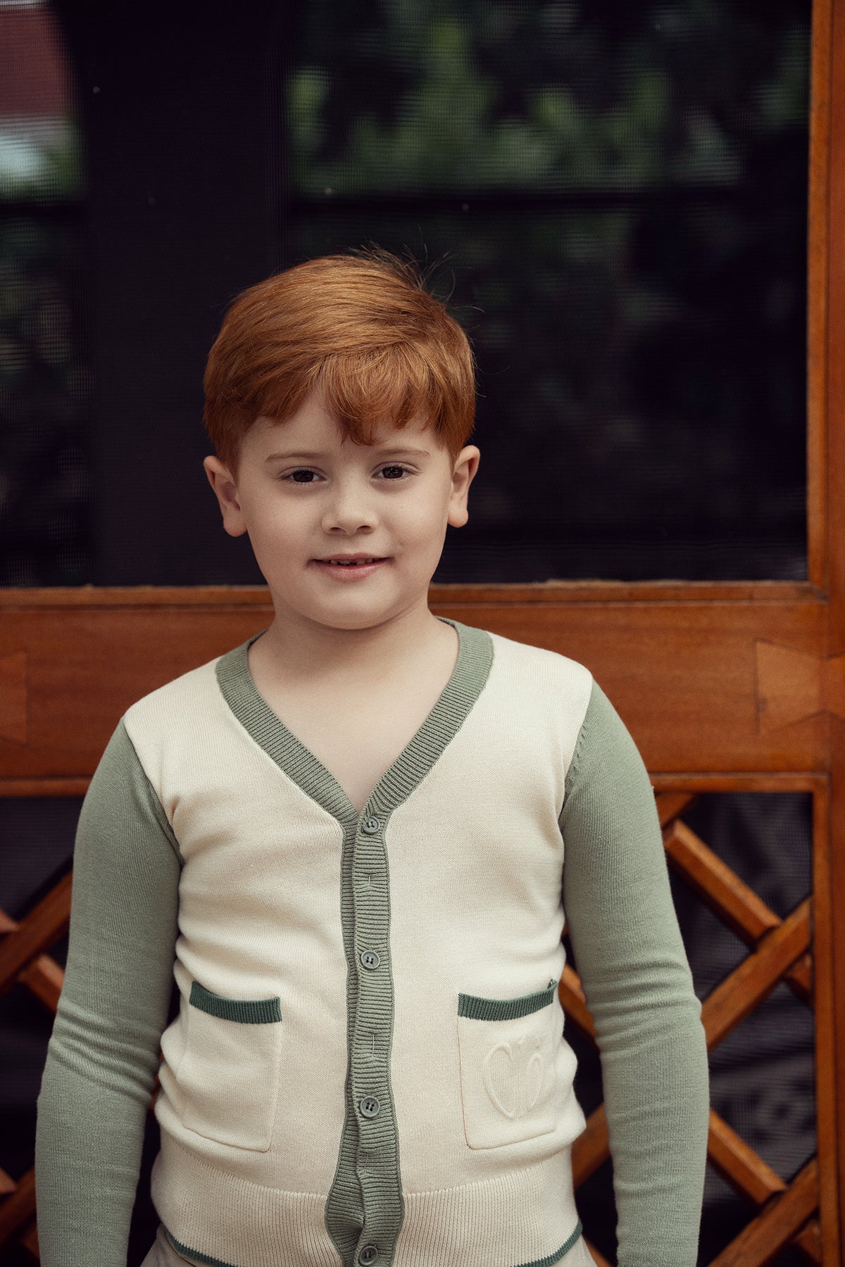 top l/s color block v neck cardigan - natural/dark sage