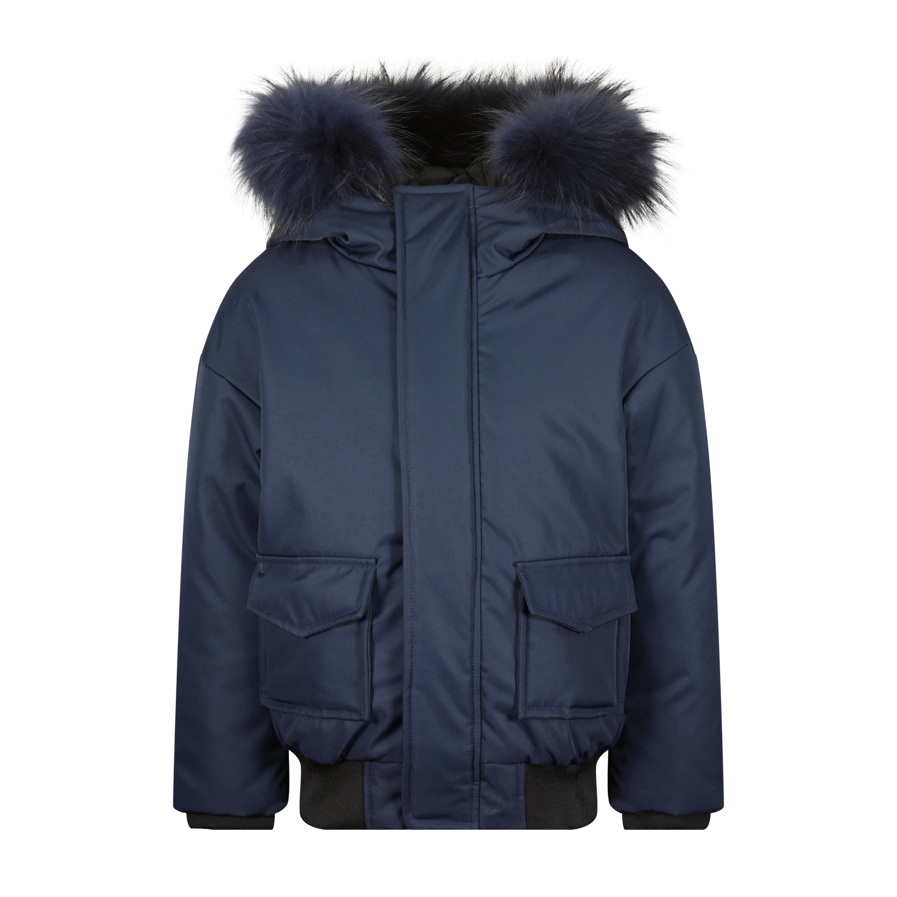 Scotch Bonnet coat canvas bomber style with fur hood - navy
