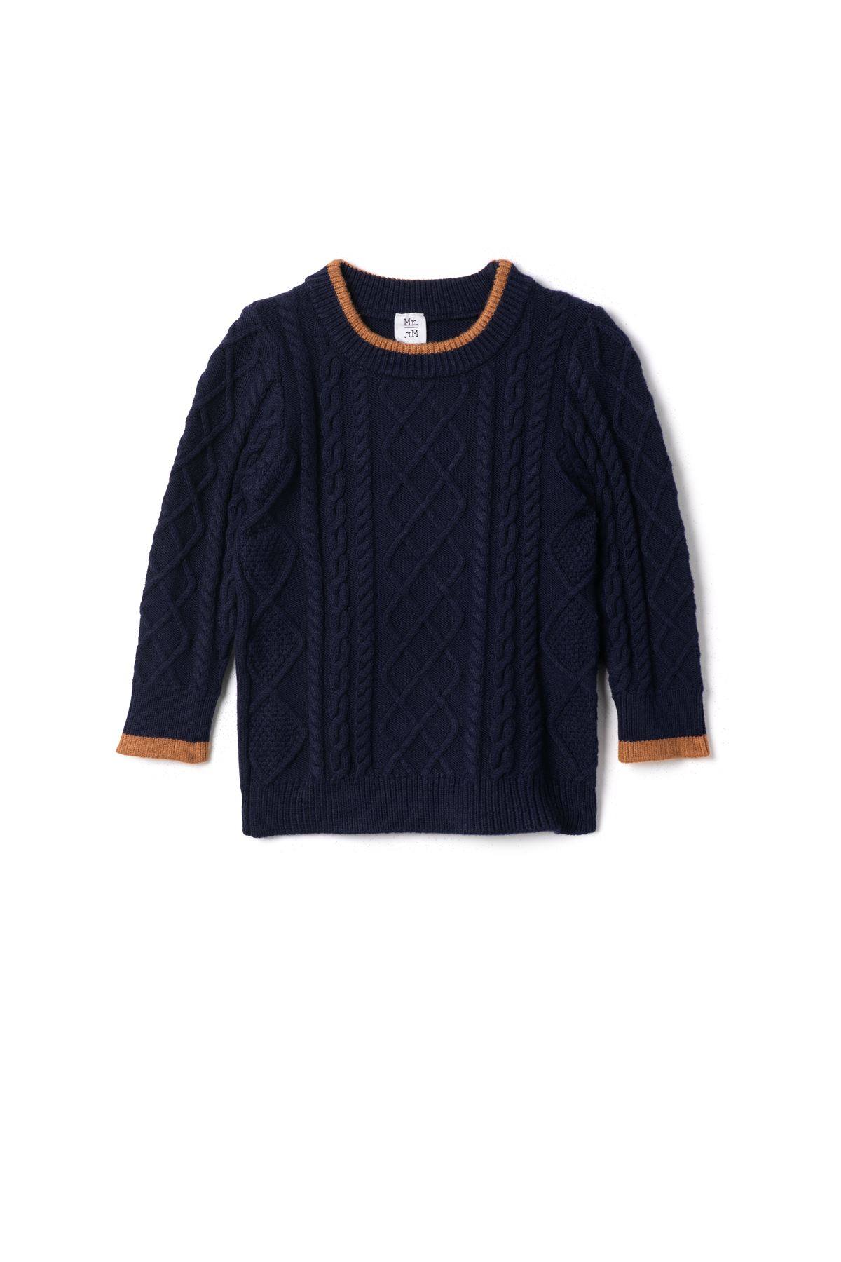 Mr. Mr. top l/s cable knit color trim sweater - navy