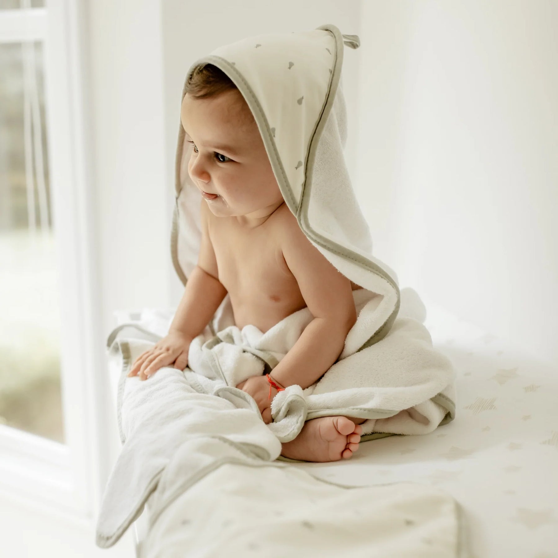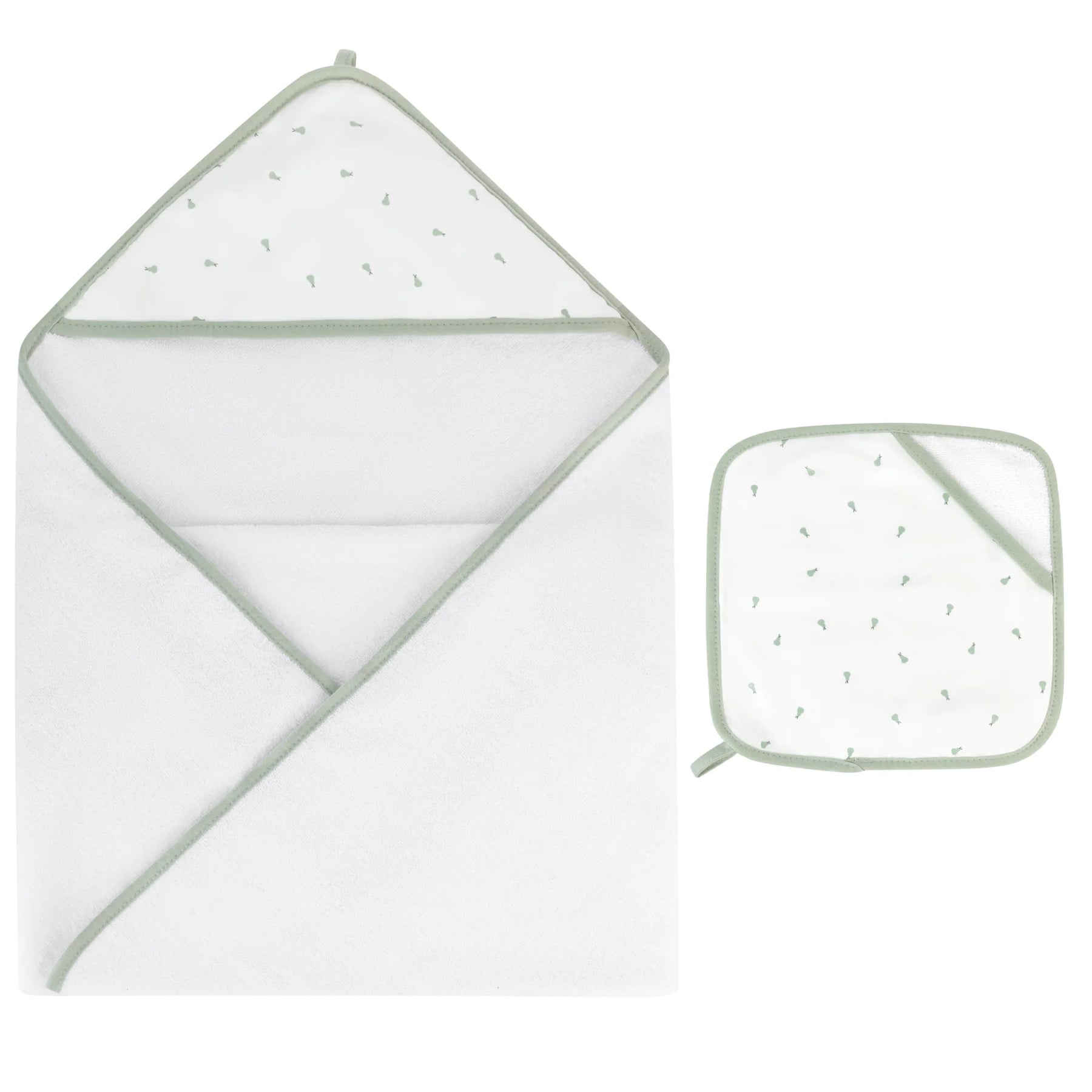 towel hooded+washcloth - pear