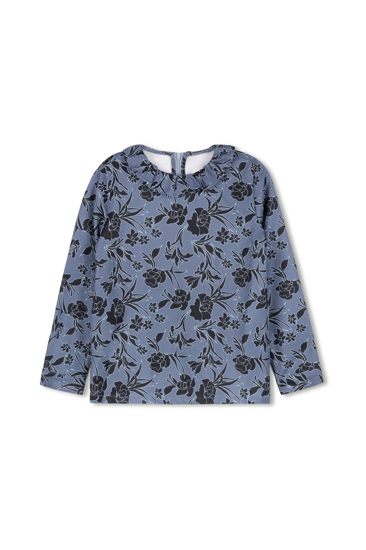 Madame Ti shirt l/s printed frill blouse - midnight blue
