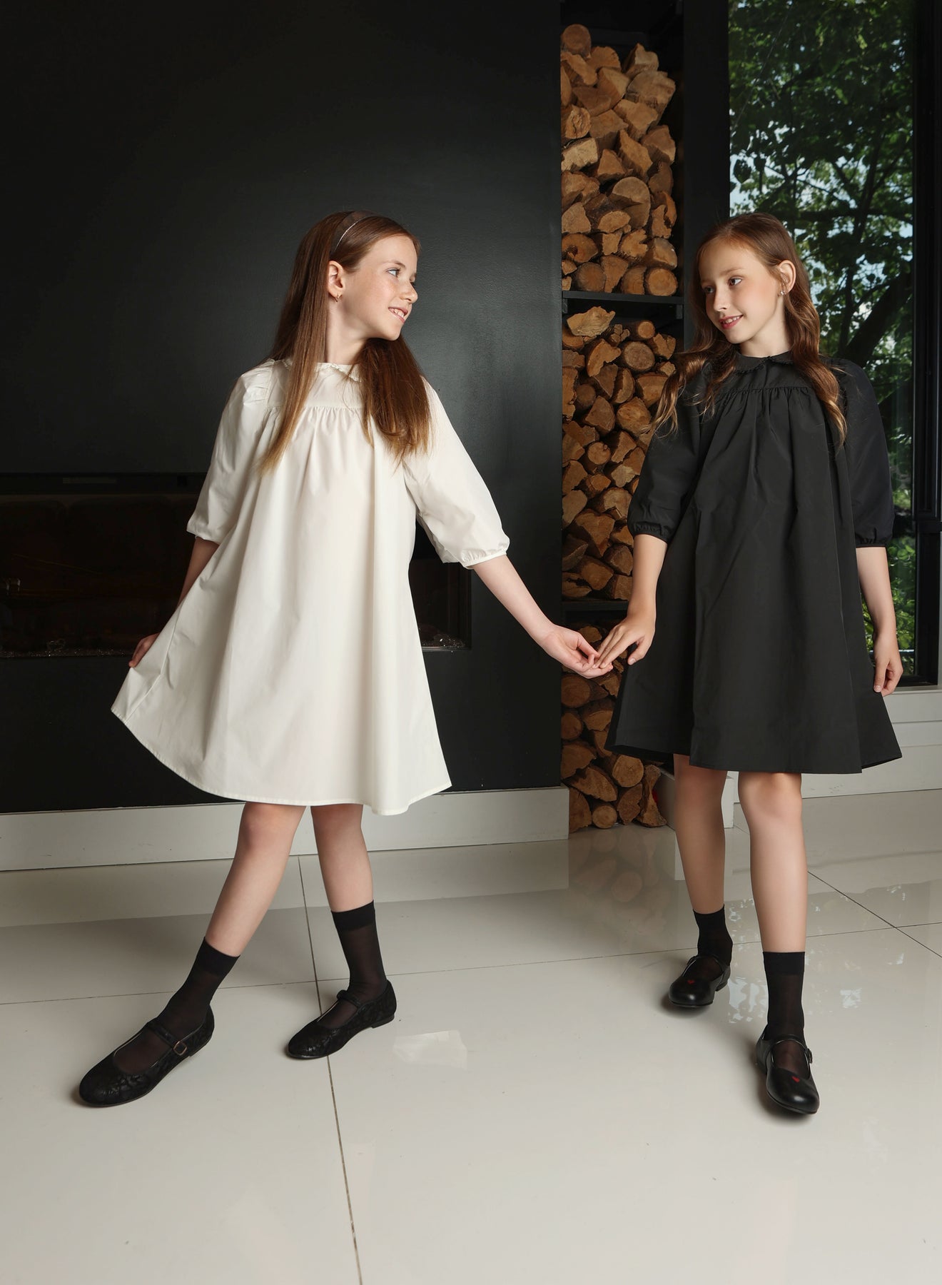 Little Tempest dress taffeta empire waisted rhinestone button back with collar - black