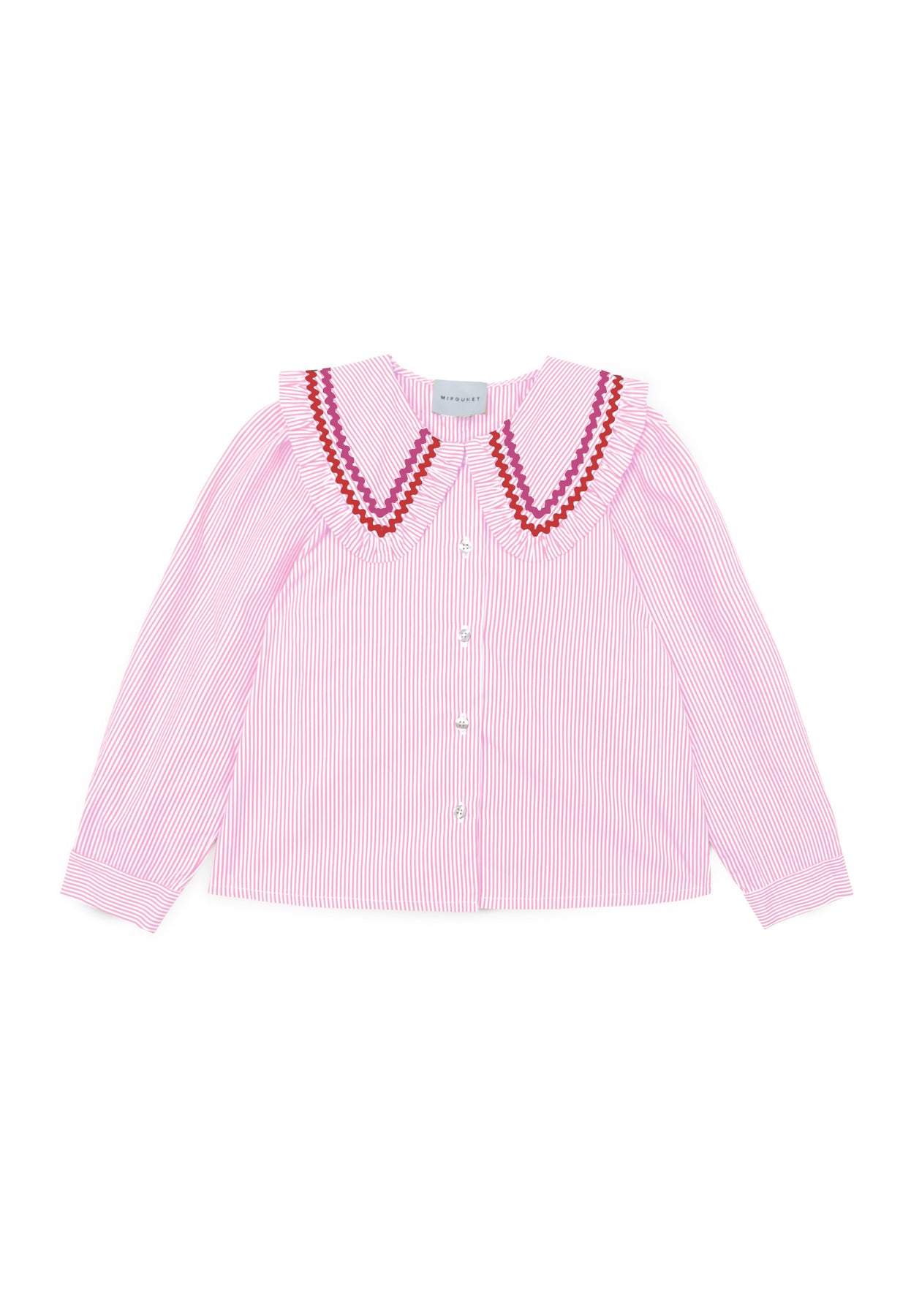 Mipounet shirt s/s striped with zig zag stitch frill collar - pink