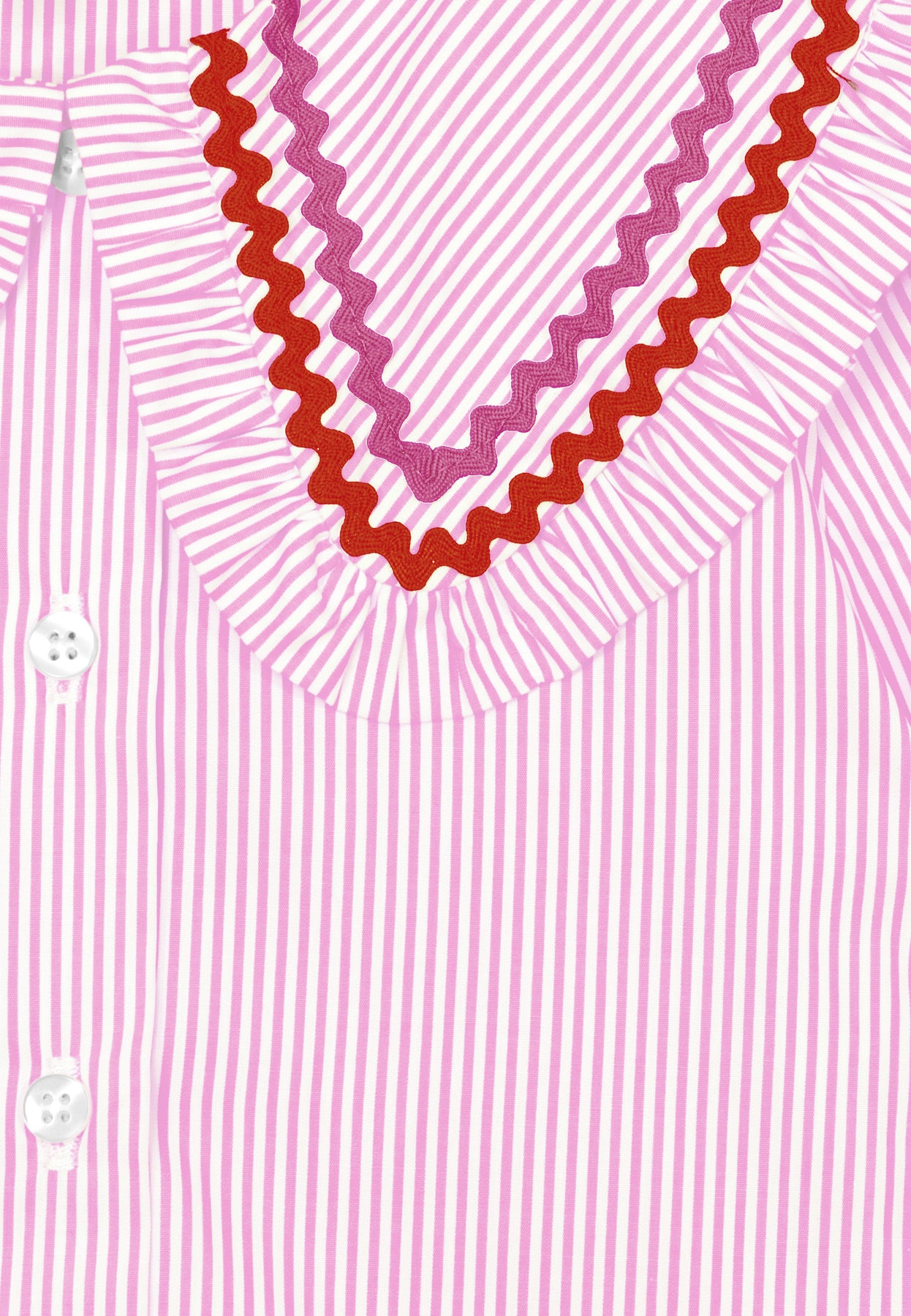 shirt s/s striped with zig zag stitch frill collar - pink