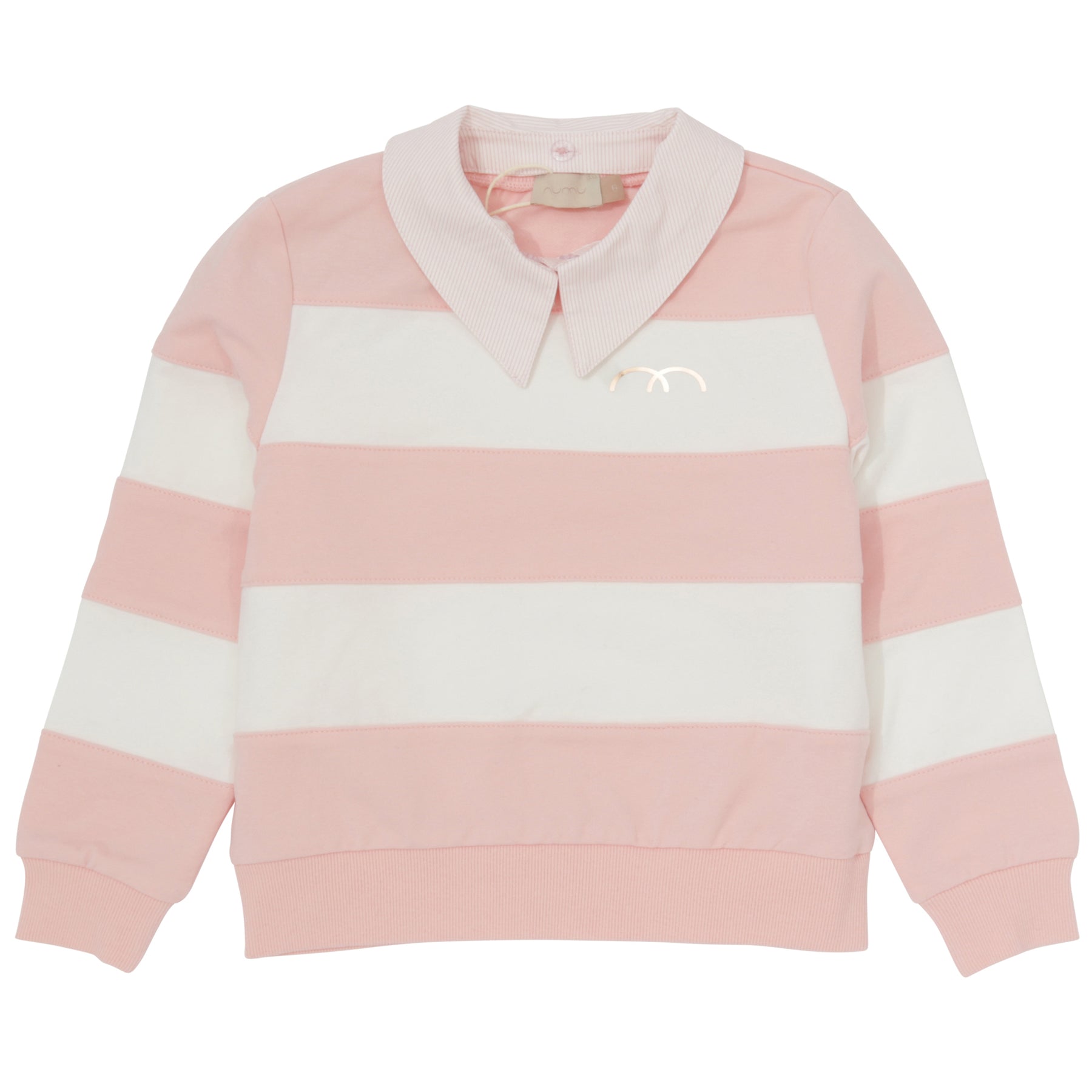 Numu top l/s striped sweatshirt with removable collar - pastel pink-58