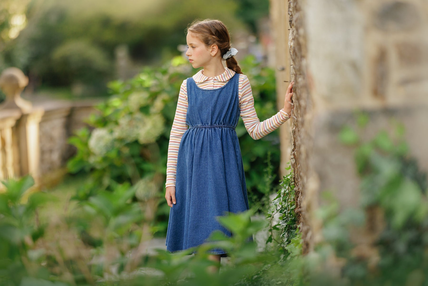 tee l/s peter pan striped button down - dark stripe
