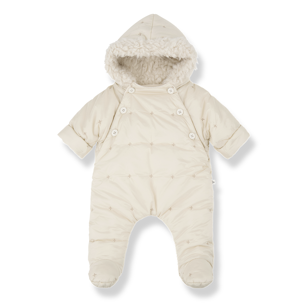 1+ in the family snowsuit padded x print sherpa hood - ecru