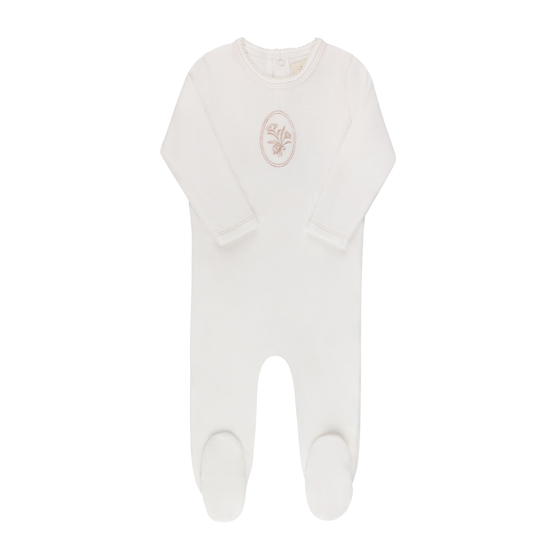 Ely`s & co footie velour center floral with bonnet - ivory/rosegold