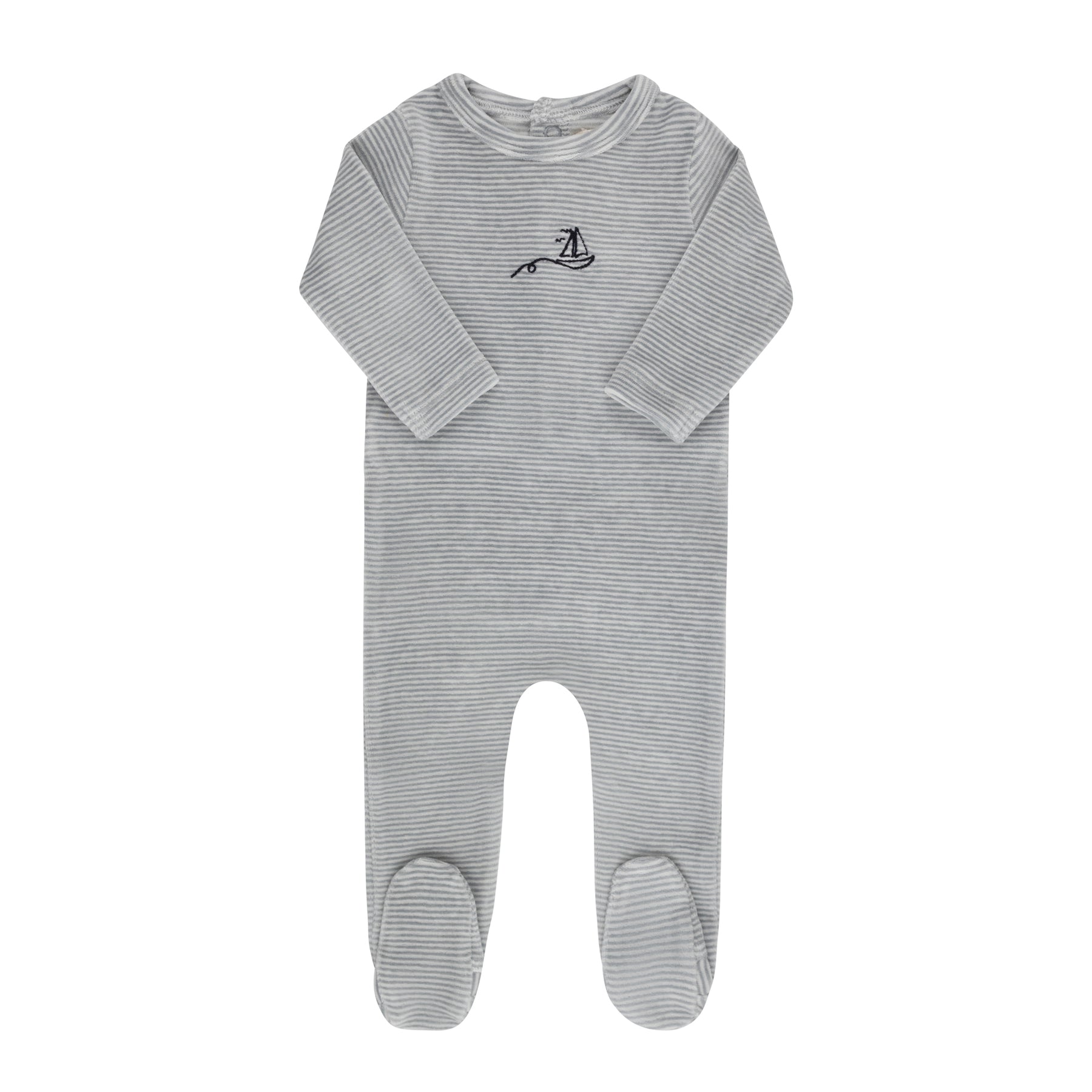 Ely`s & Co footie velour striped butterfly and boat - light blue