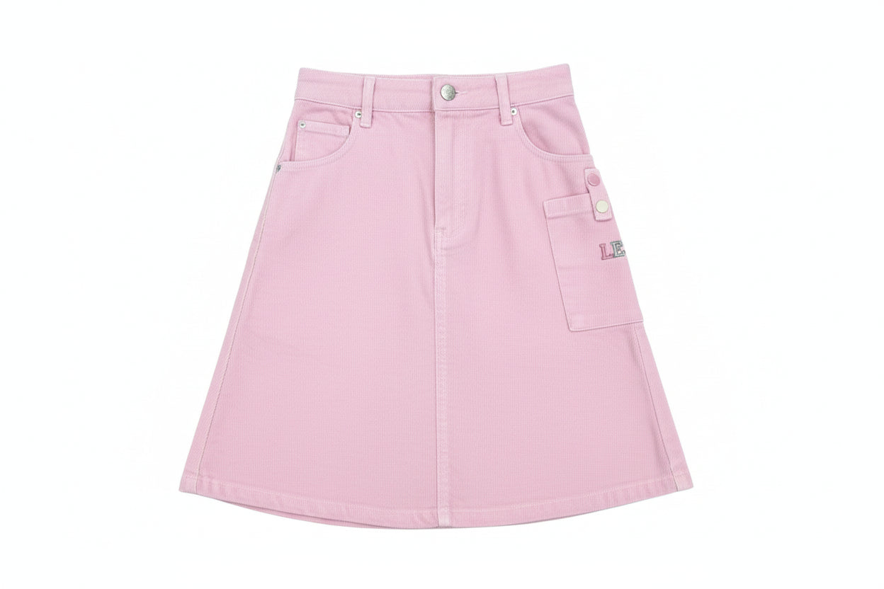 skirt denim snaps with side pocket - pale pink-81