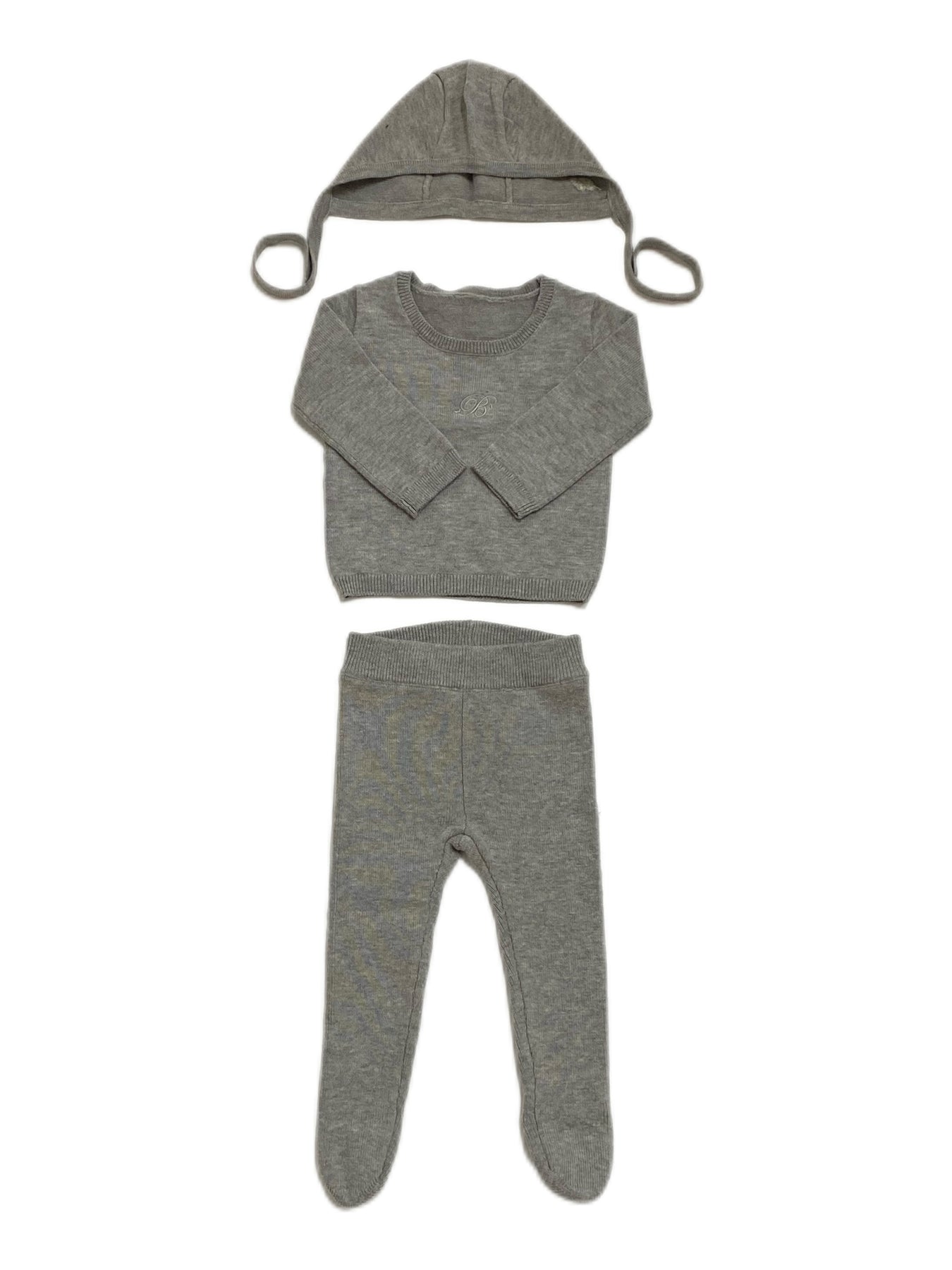 Kipp set knit sweater and footie pants with bonnet and blanket - grey