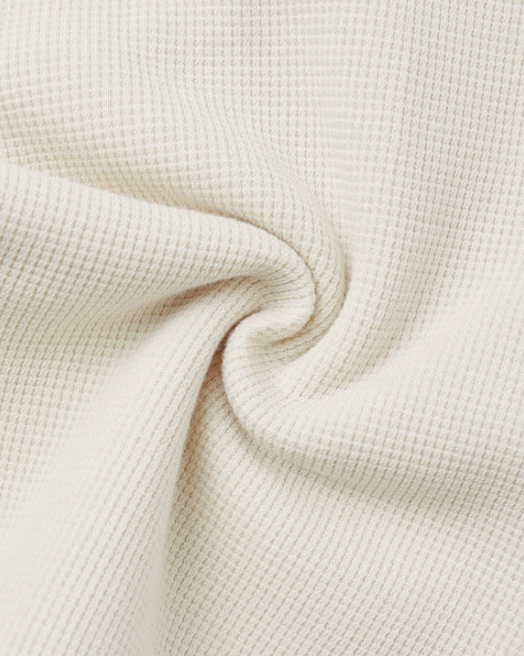 set knit waffle lace wrap top and footie pants with bonnet - natural