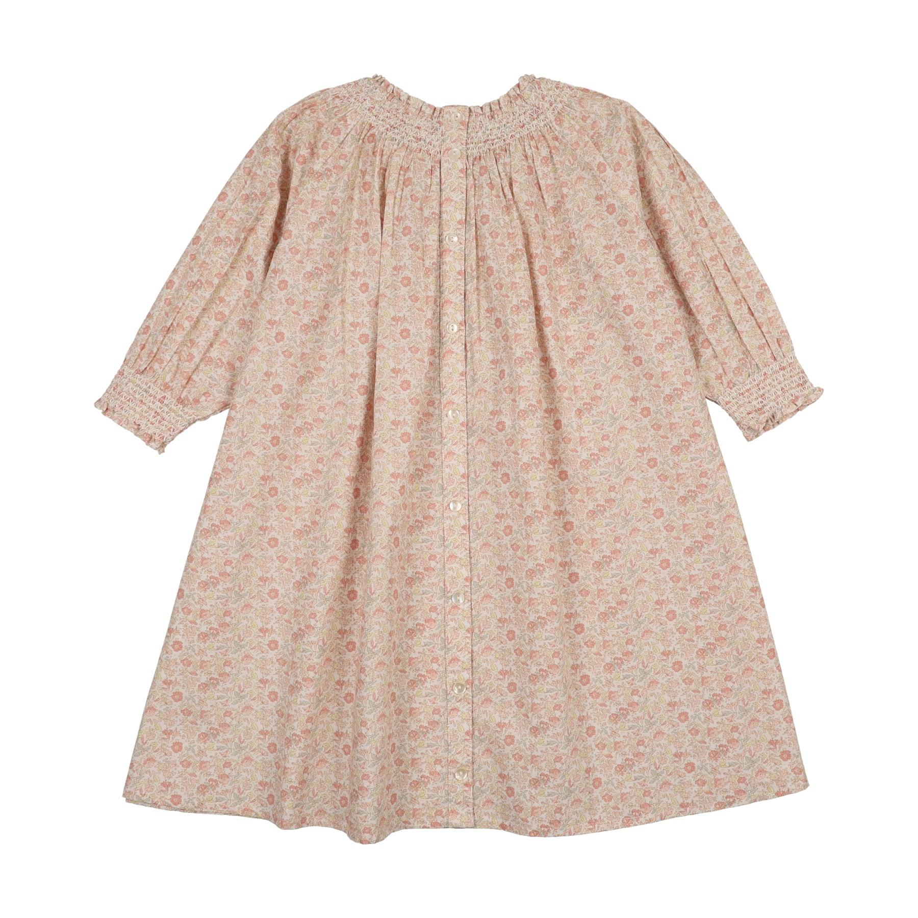 dress 3/4 sleeve sunny blossoms smocked - bud pink