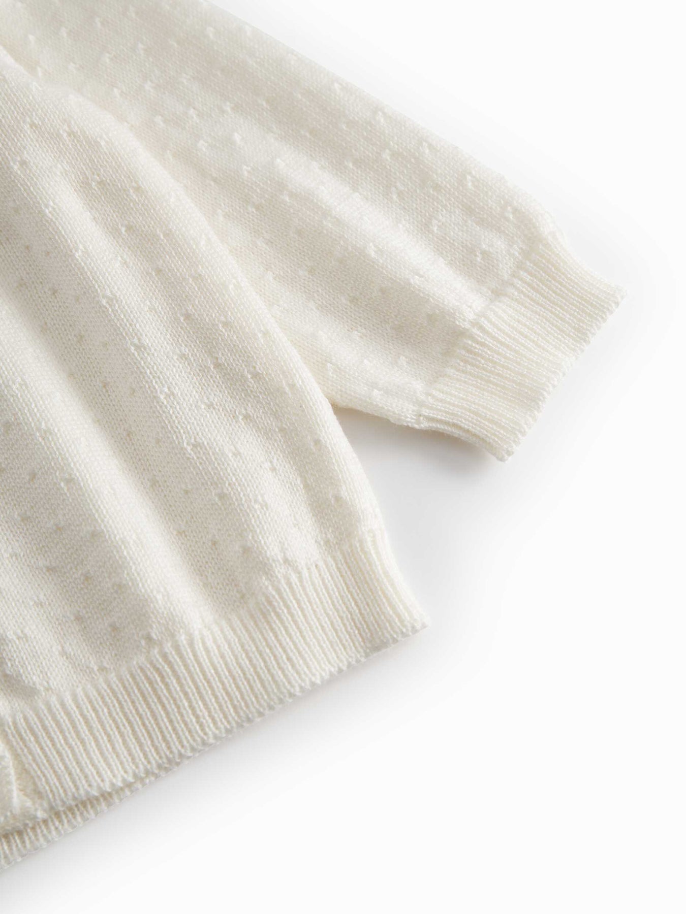 set knit mini polka dot cardigan and pants with bonnet - gentle white