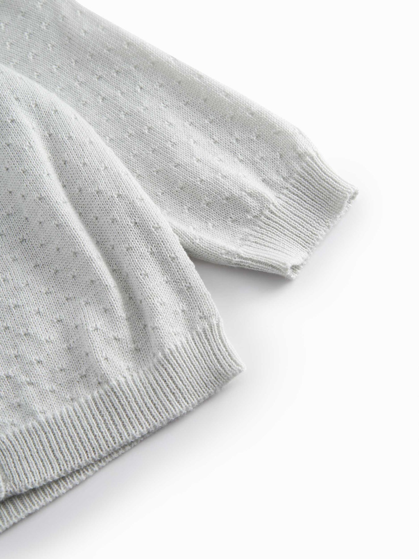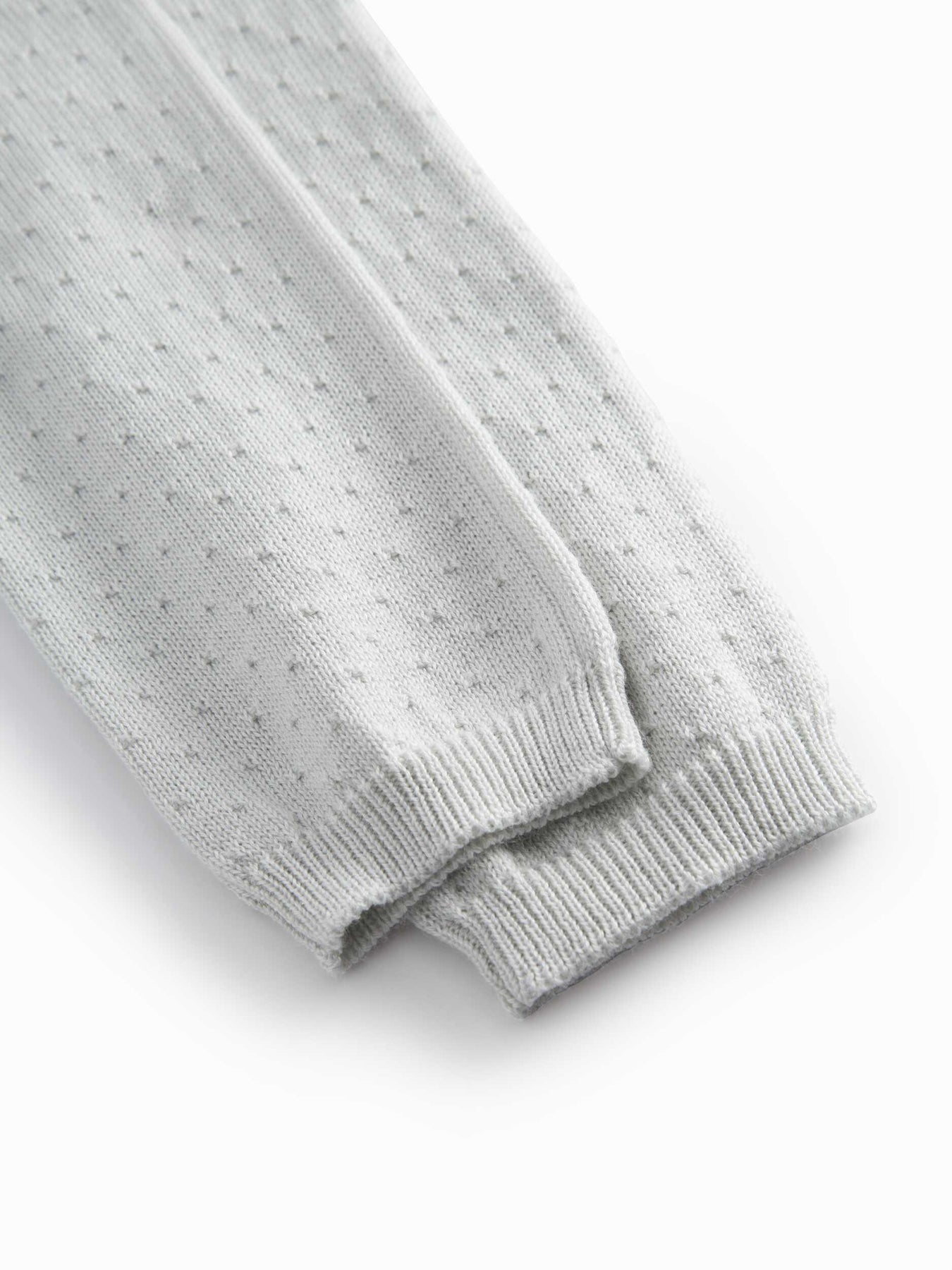 set knit mini polka dot cardigan and pants with bonnet - morning dew