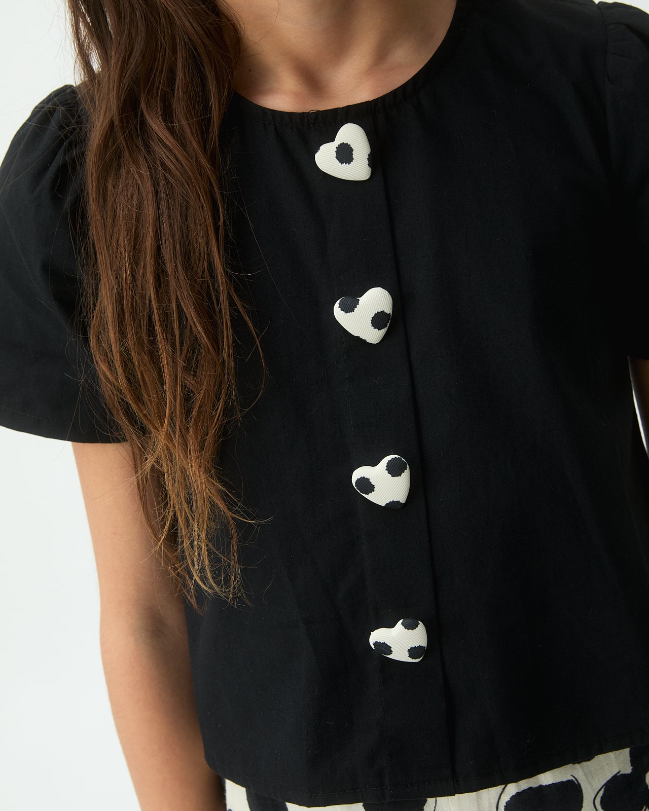 shirt s/s chunky heart button blouse - black