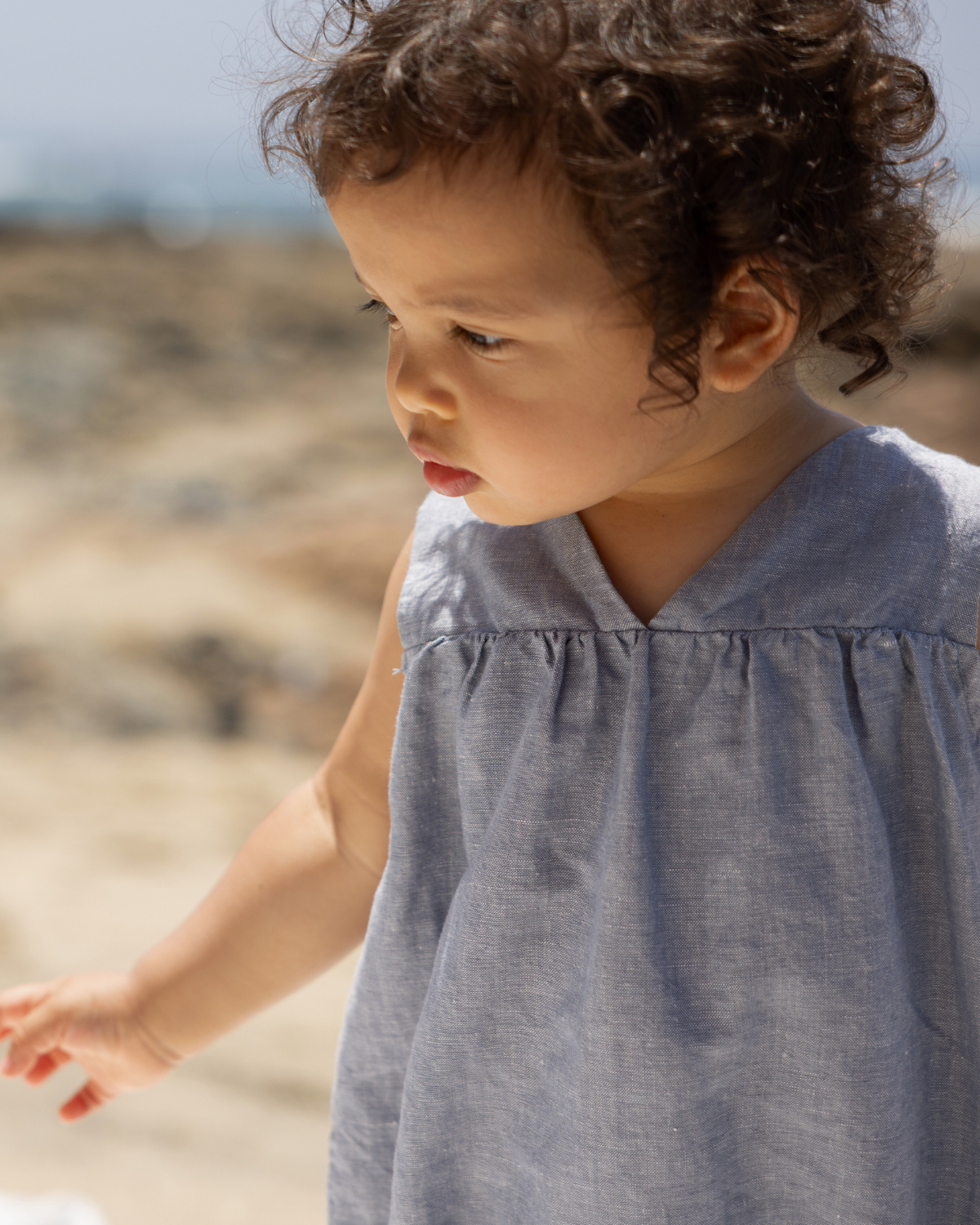 Go Gently one piece high waisted woven bubble romper - chambray