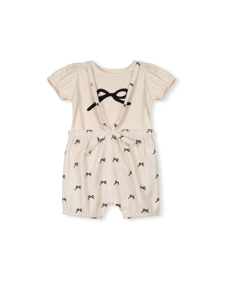 Phil And Phoebe set outfit bows tee and suspender shorts - ivory