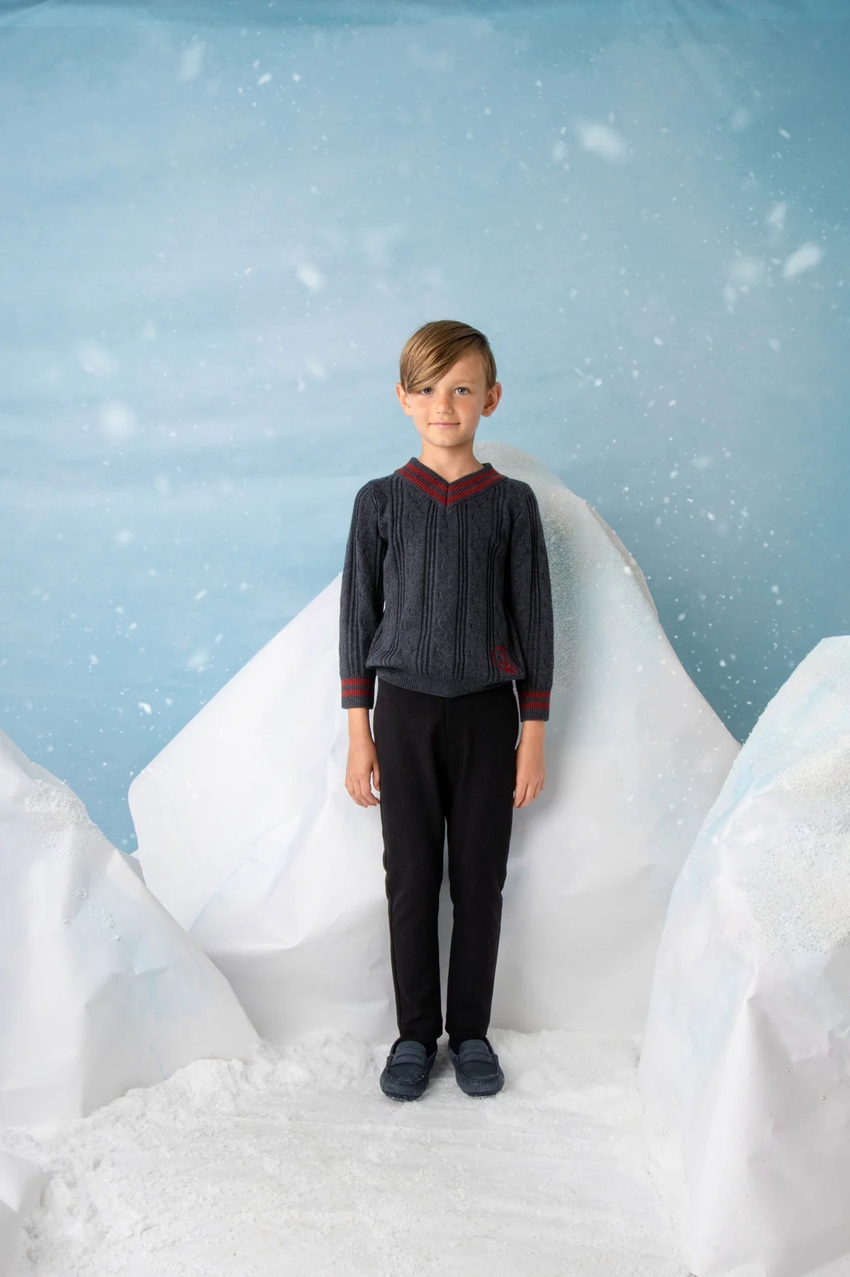 Noma top l/s textured knit sweater with striped trims - charcoal