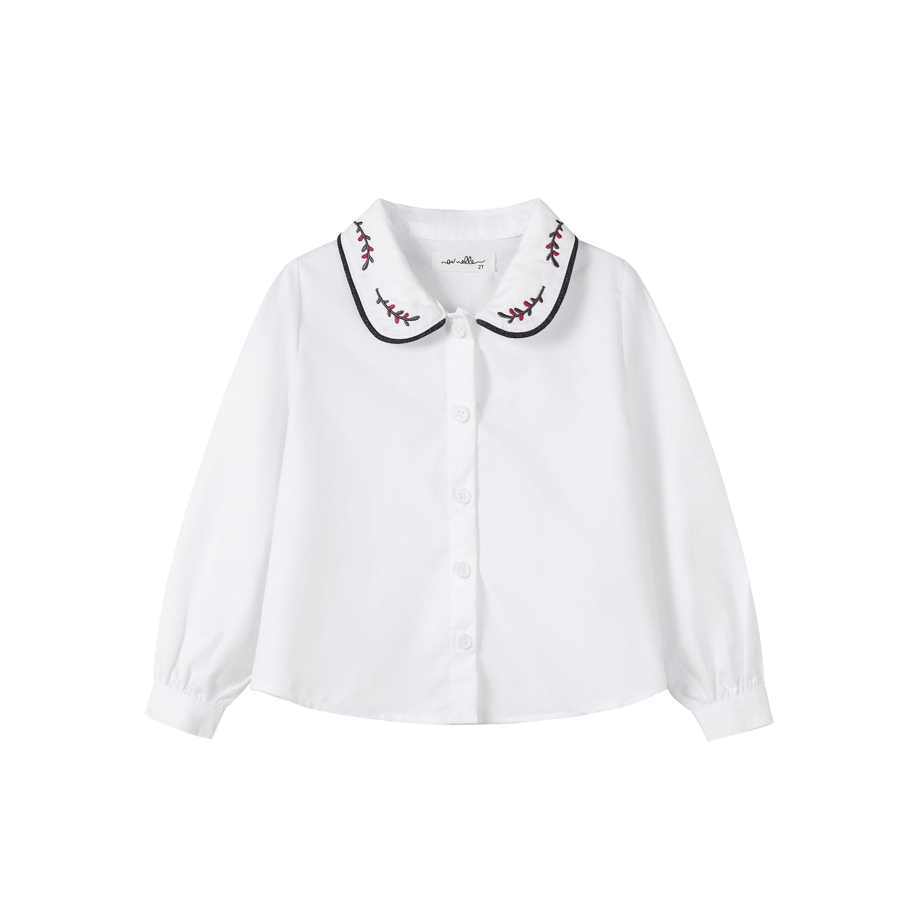 Nou Nelle shirt l/s embroidered collar - white/magenta