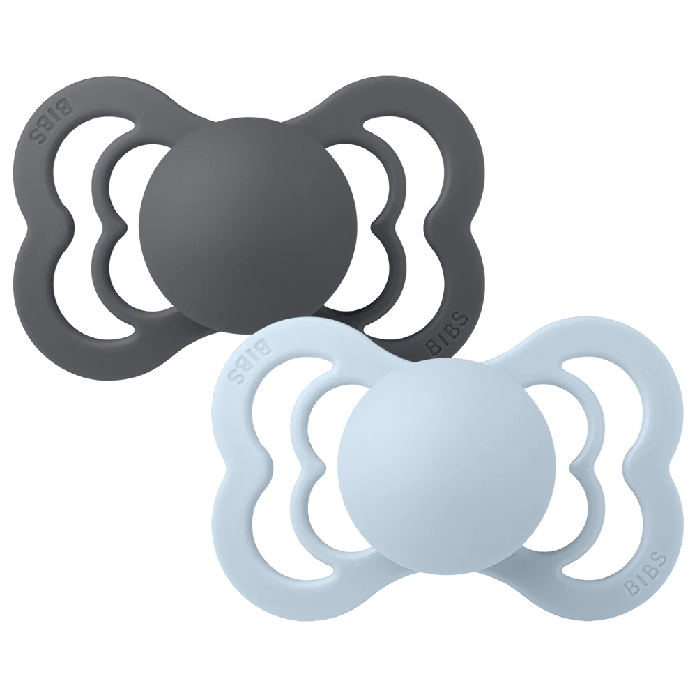 Bibs pacifier 2 pk supreme symmetrical silicone - iron/baby blue