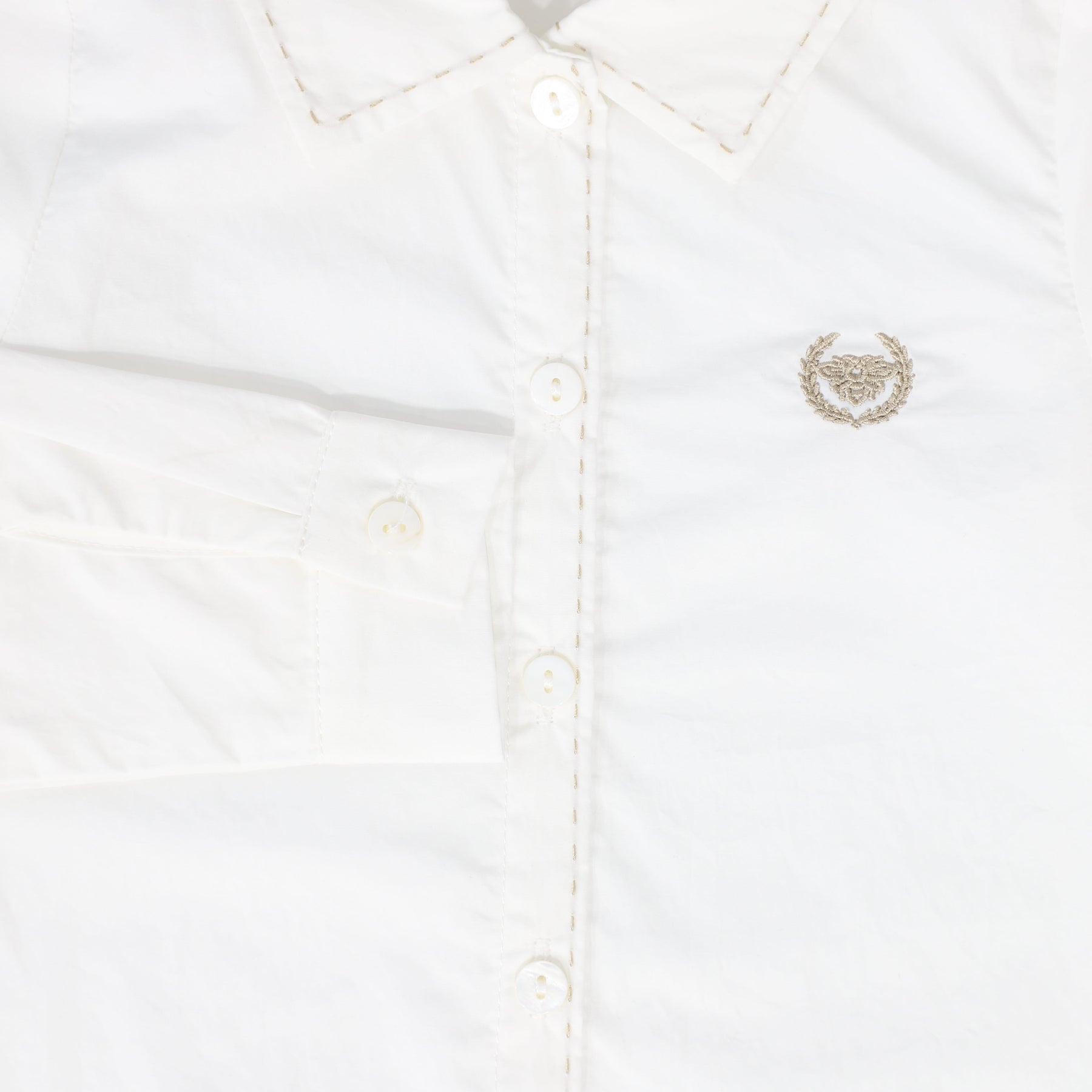 shirt l/s scalloped trim collar with logo - white/tan