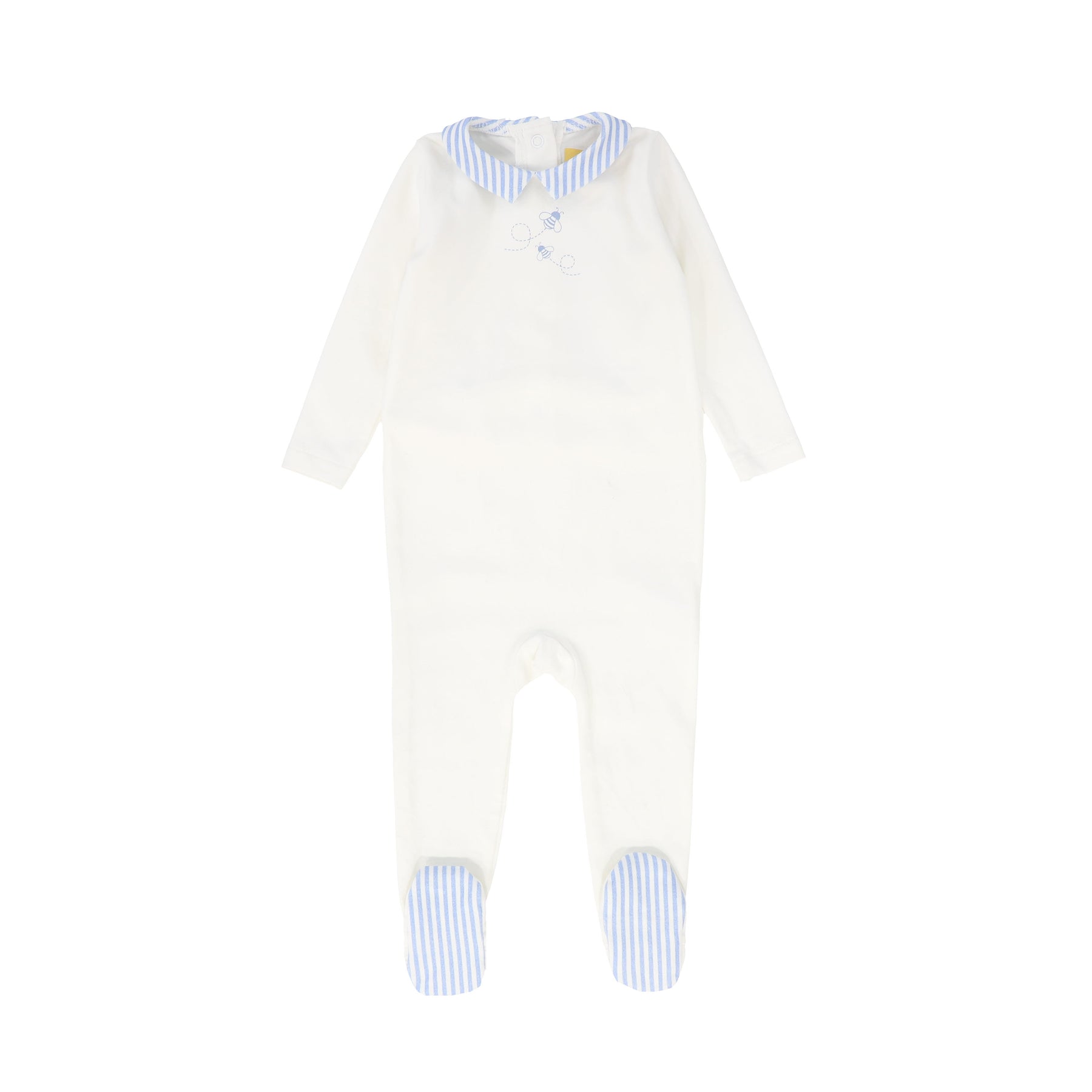 footie stripe collar with bee - light blue
