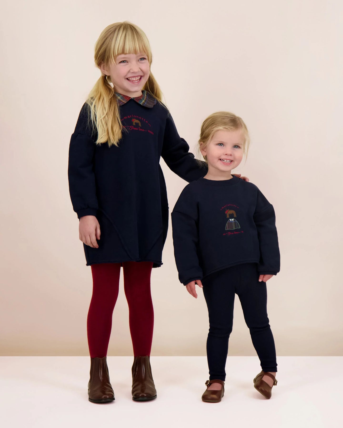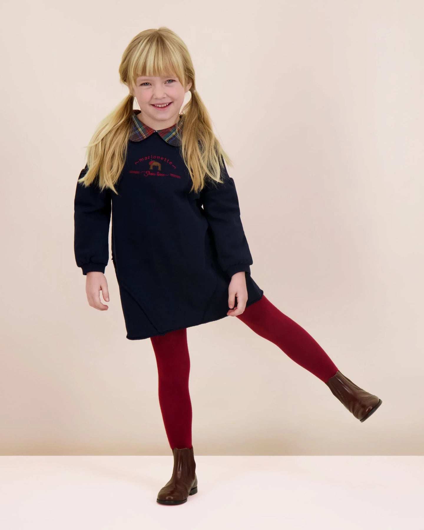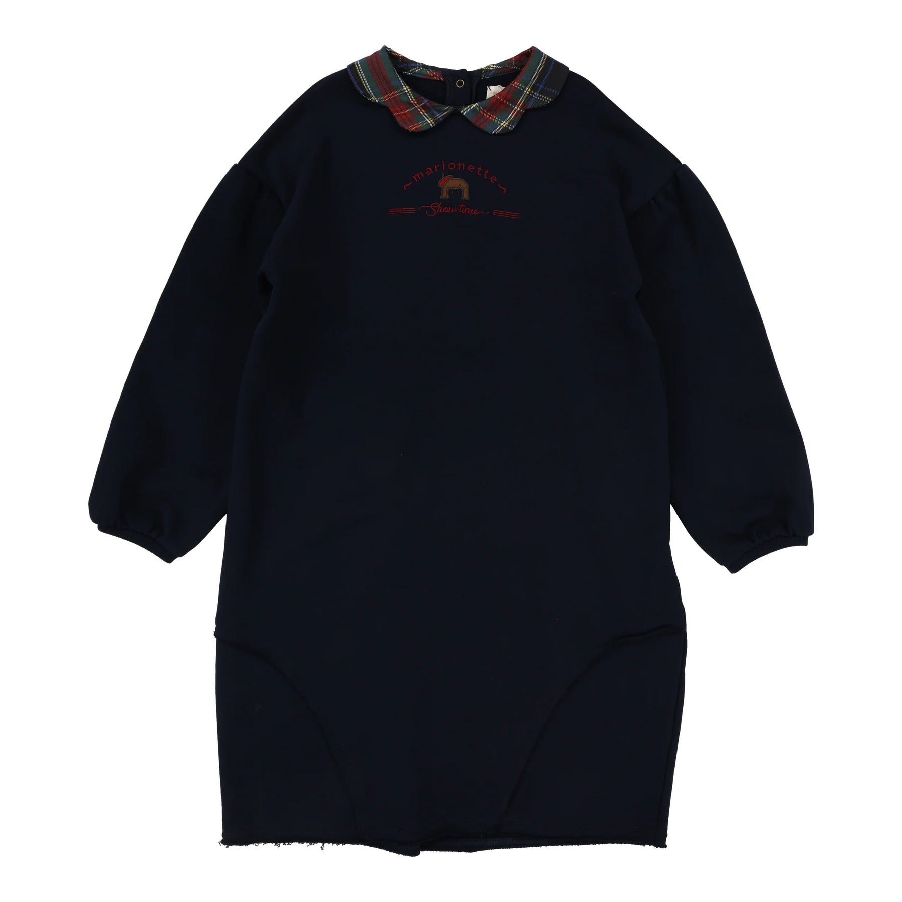 Lil Legs dress embroidered plaid scalloped collar - navy