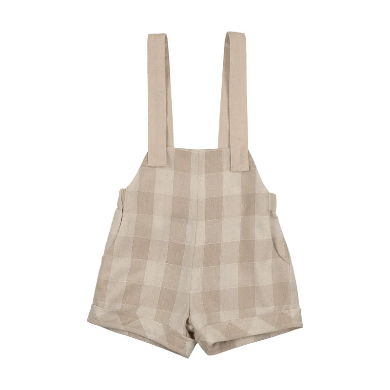 one piece light checkered crossback overalls - camel