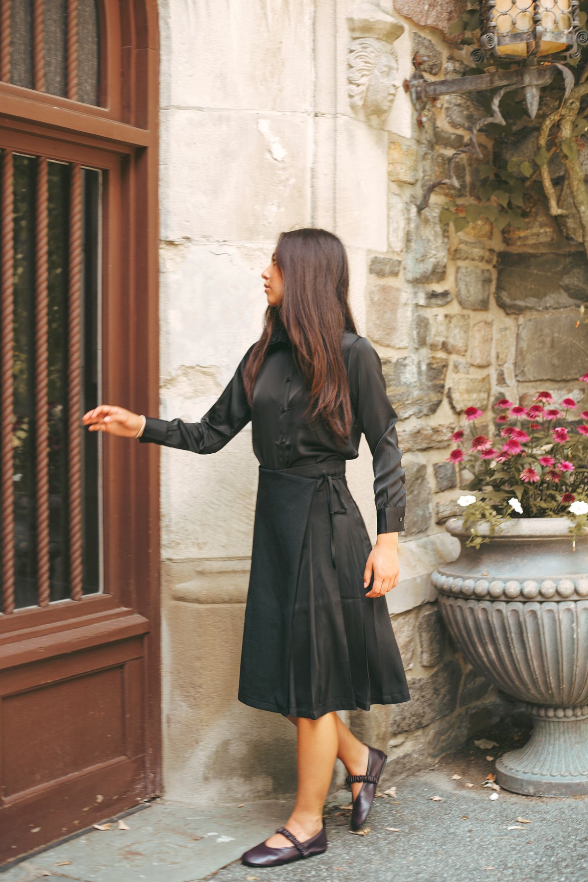 skirt pleated wrap - black