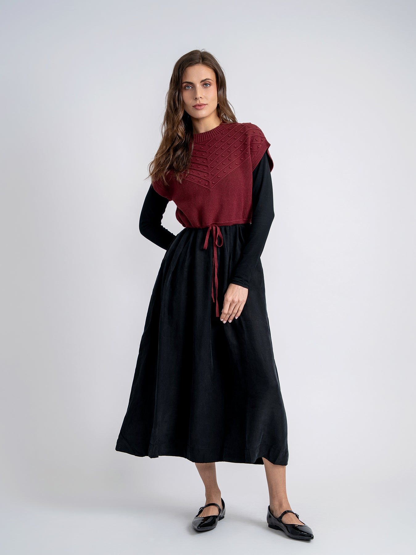vest knitted cropped drawstring - burgundy