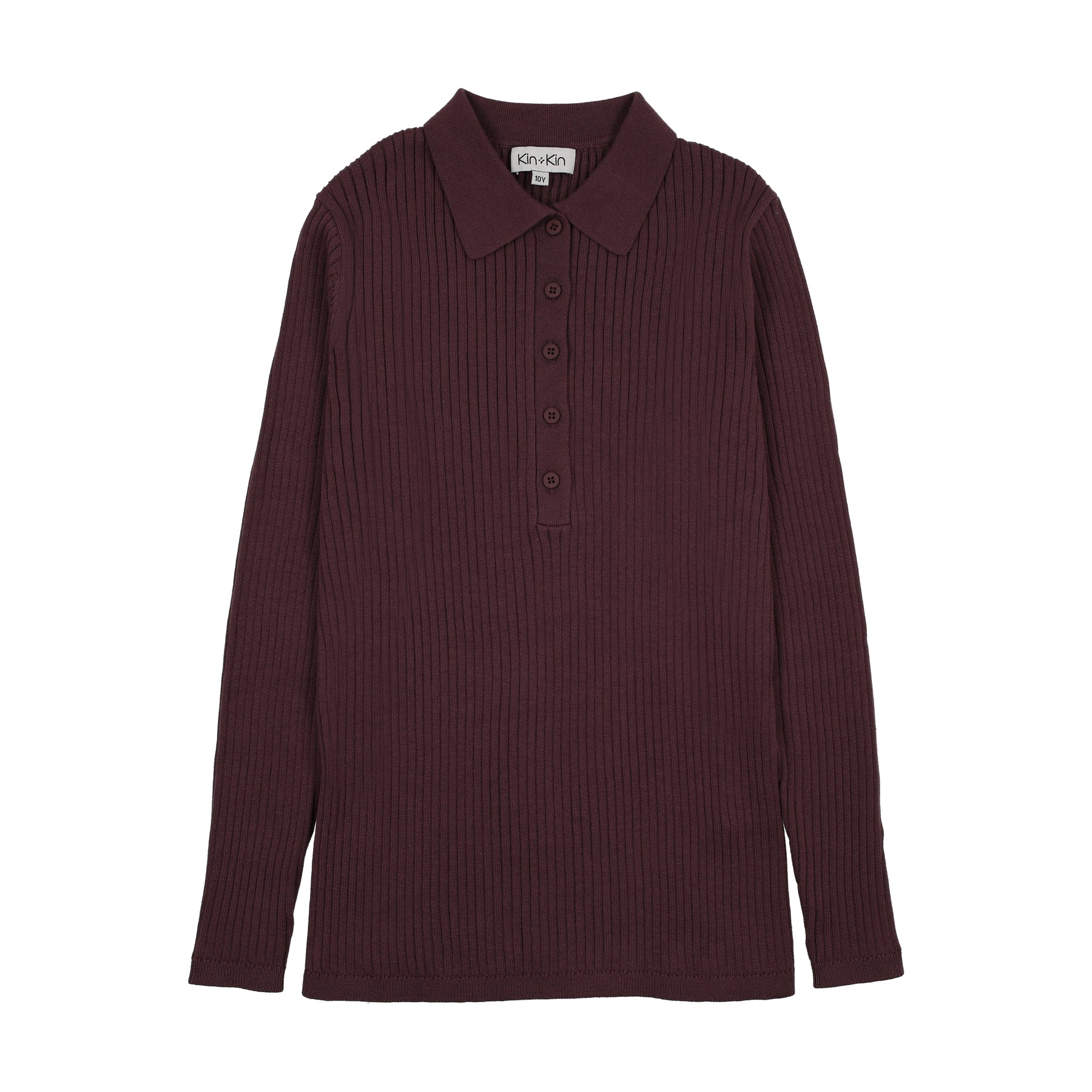 Kin & Kin top l/s ribbed knit henley sweater - plum