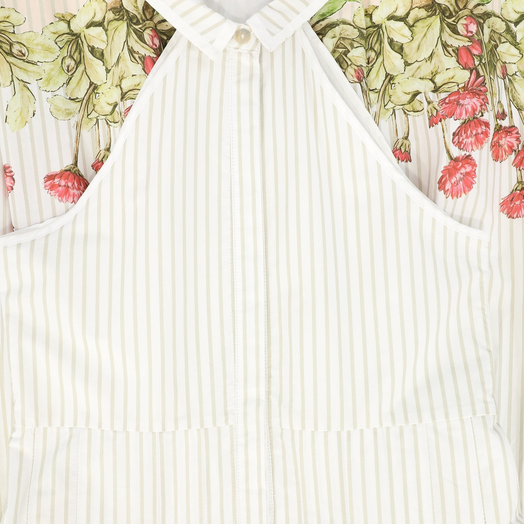 Bace Collection dress jumper striped floral bottom with collar - white/tan