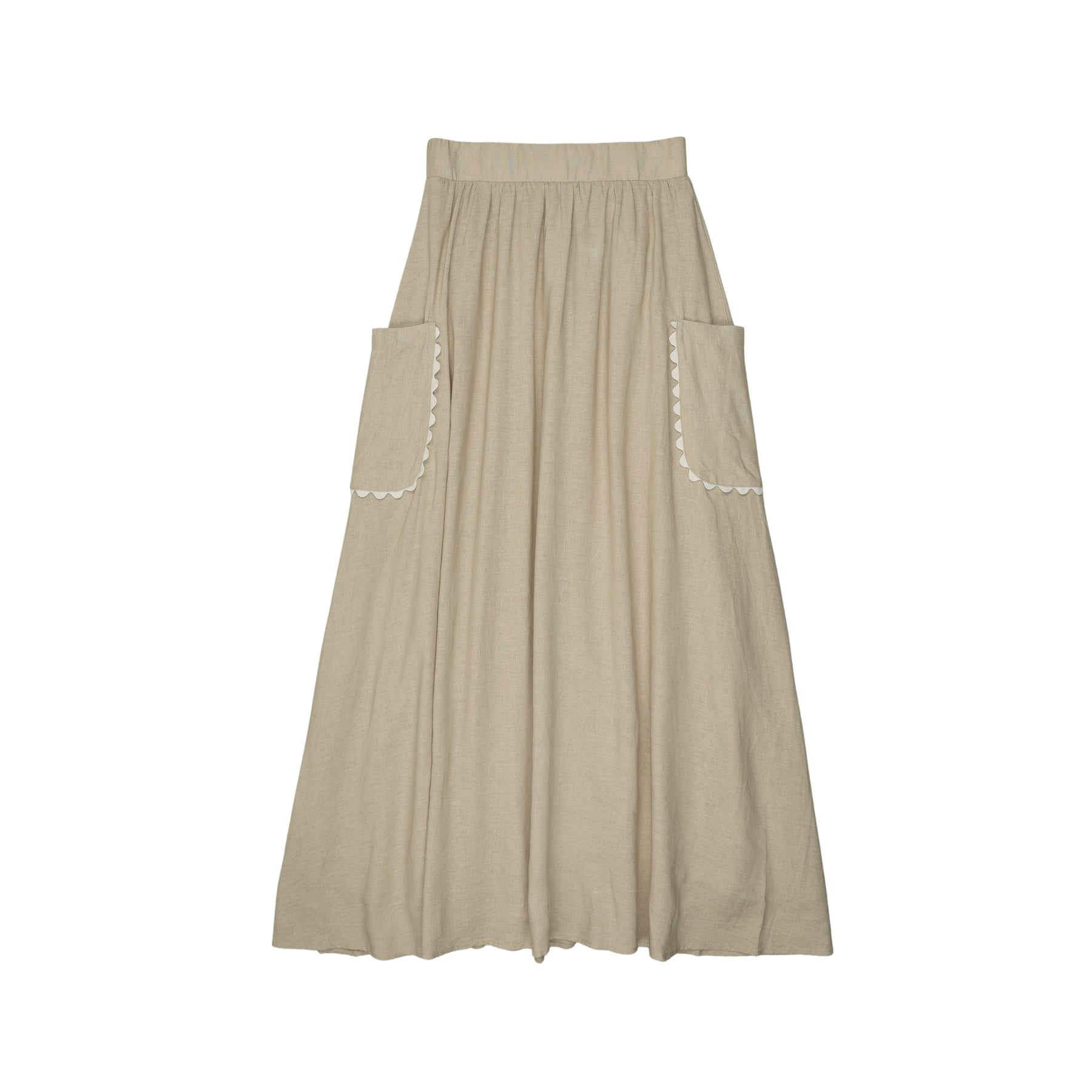 Ann Of Nan set outfit linen bow blouse and scallop pockets skirt - oatmeal