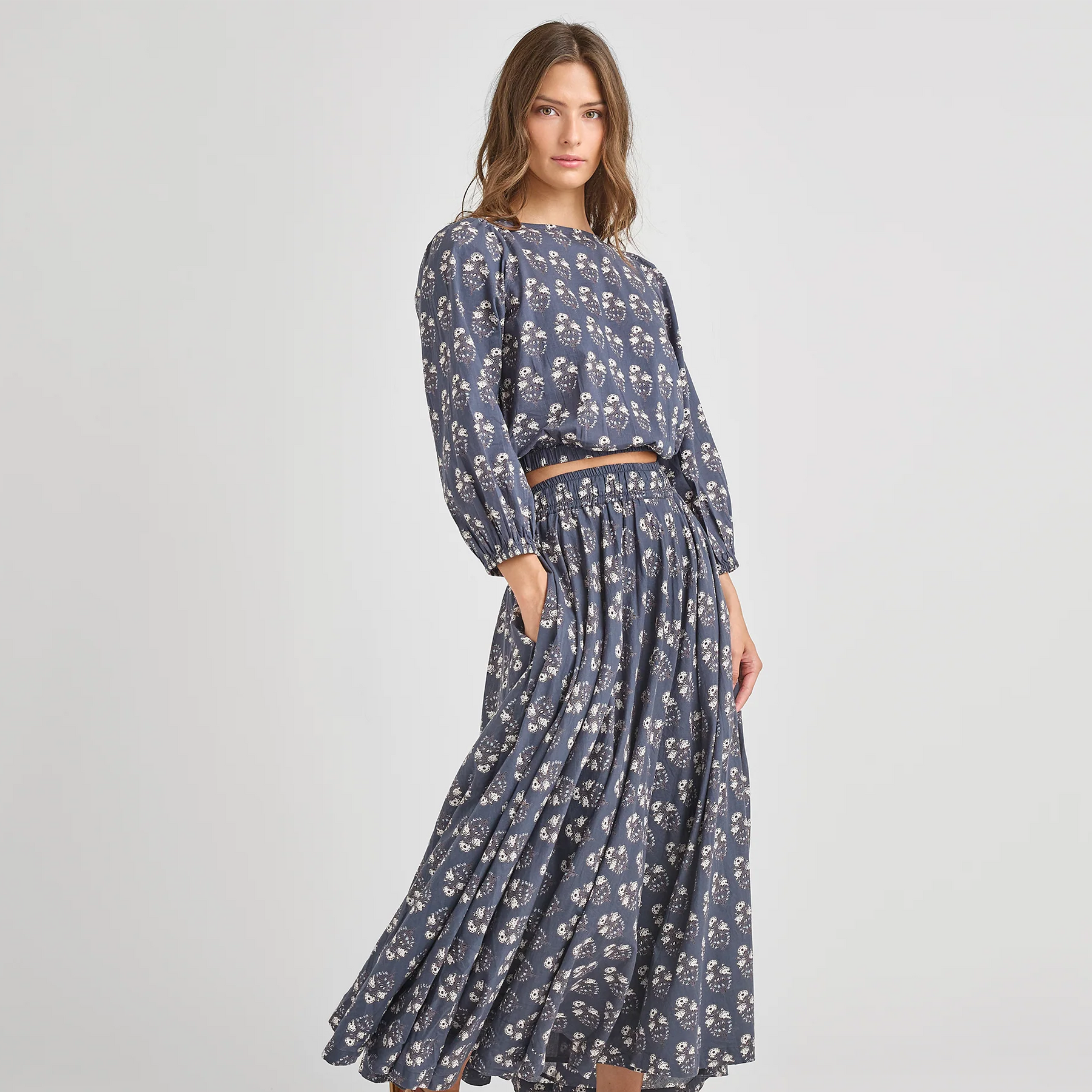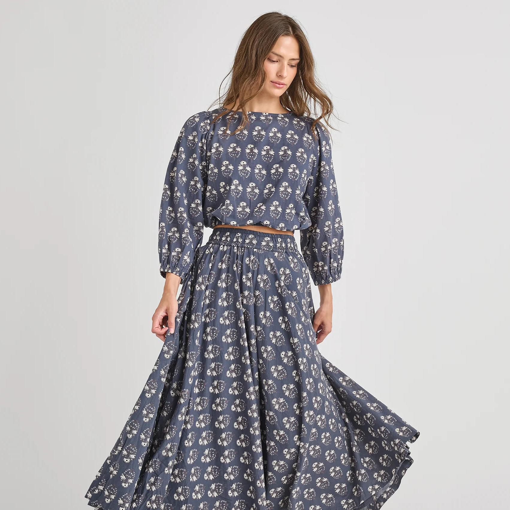 set outfit floral print top and skirt - navy strawflower