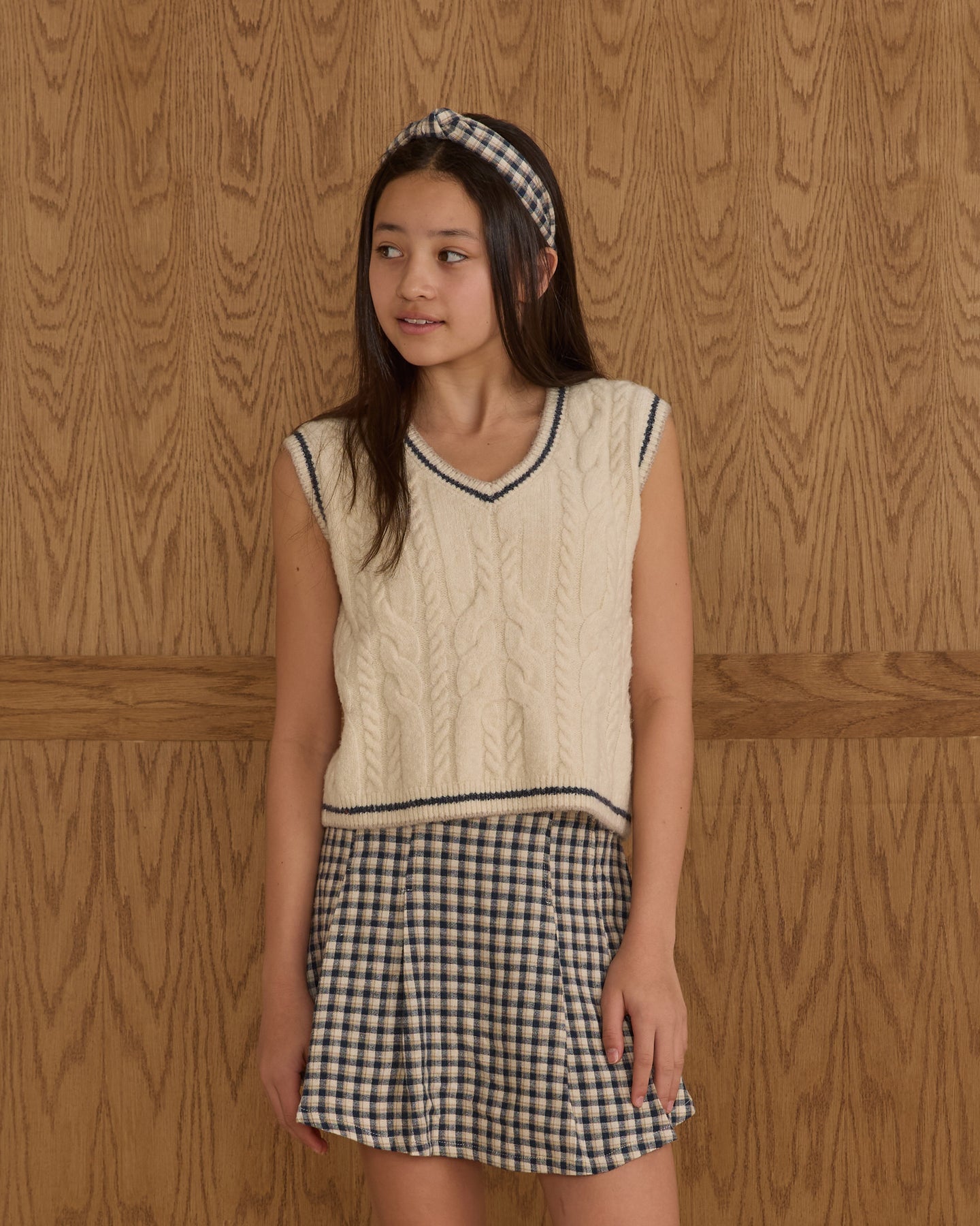 Rylee+cru vest cable knit striped trim - natural