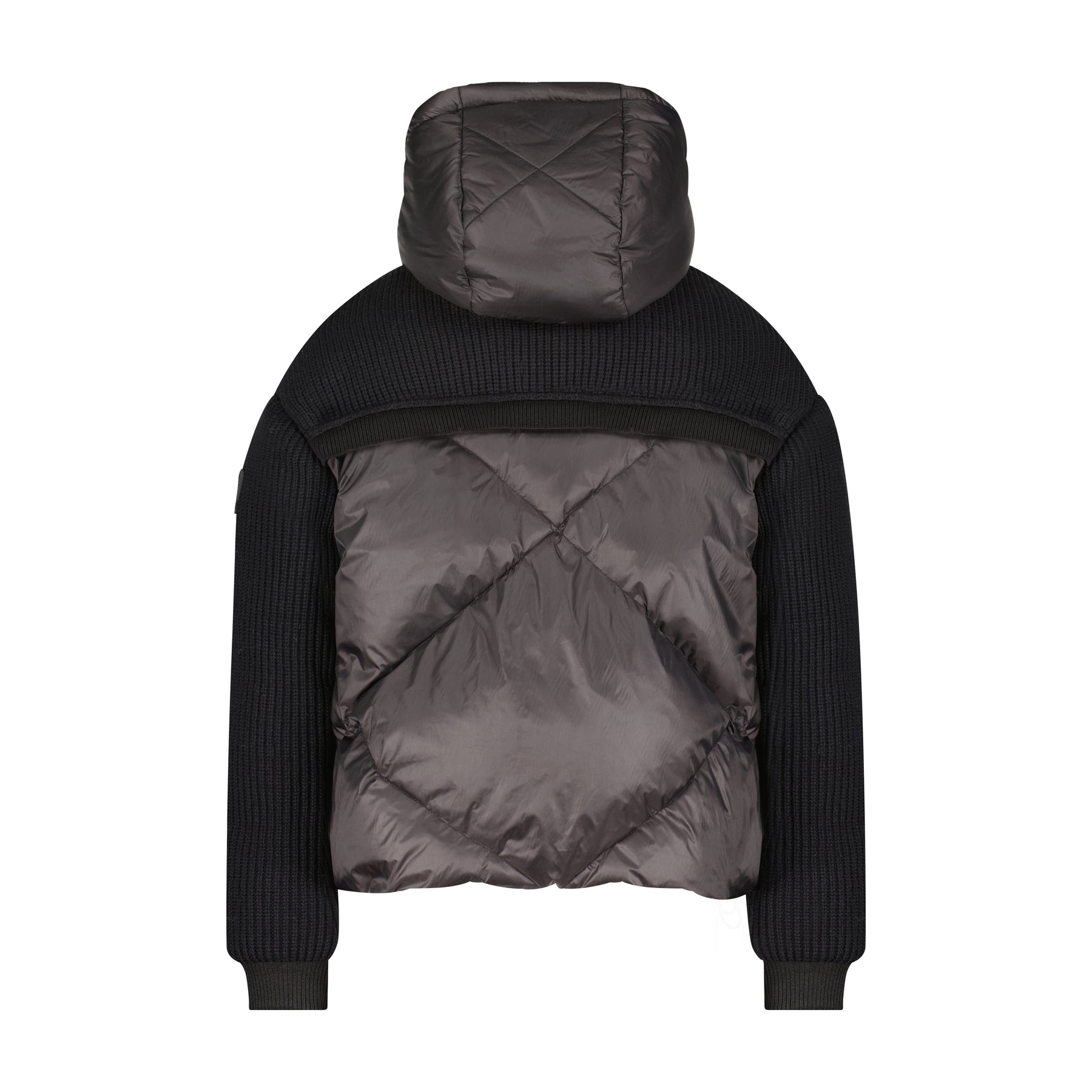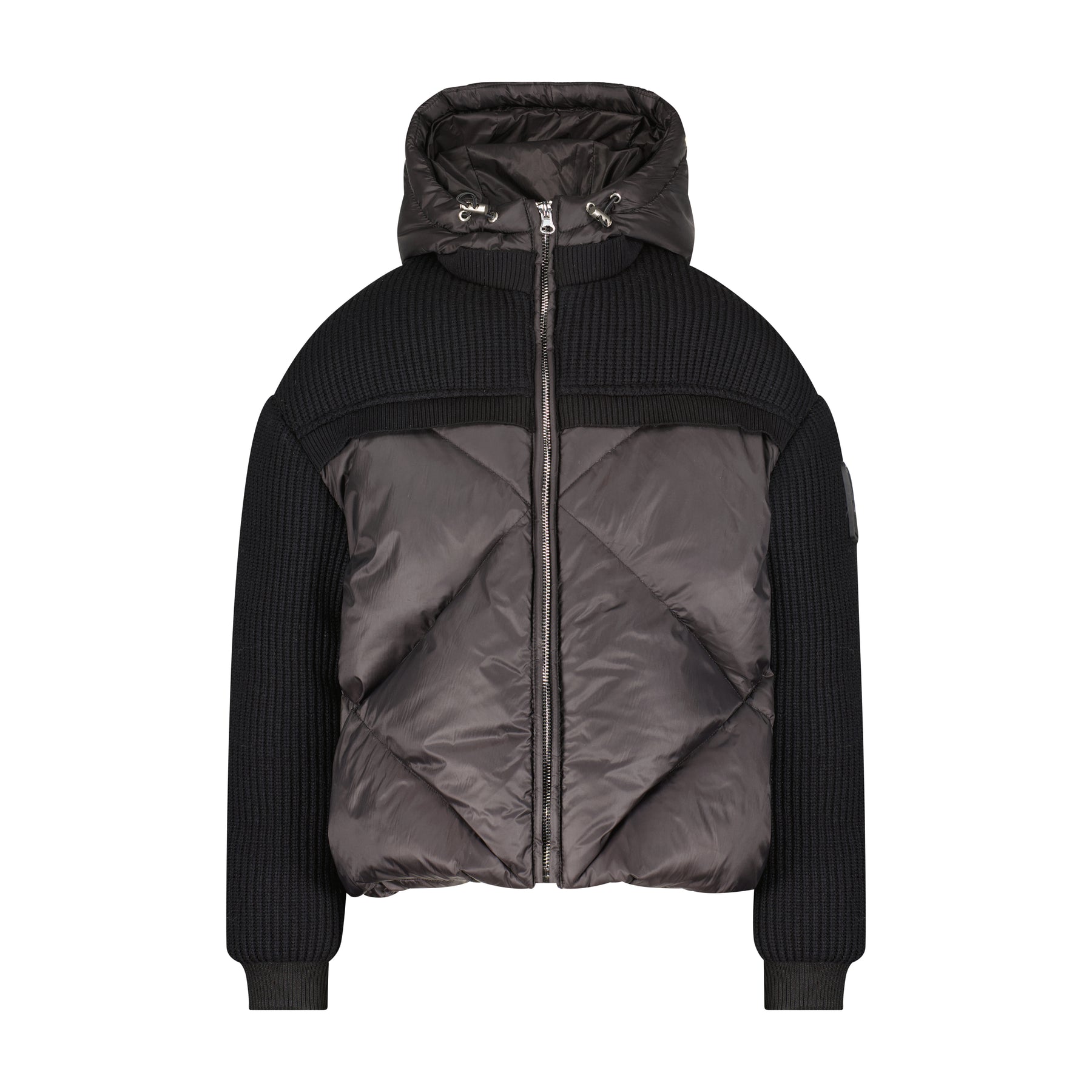 Scotch Bonnet coat knitted detail puffer with hood - black