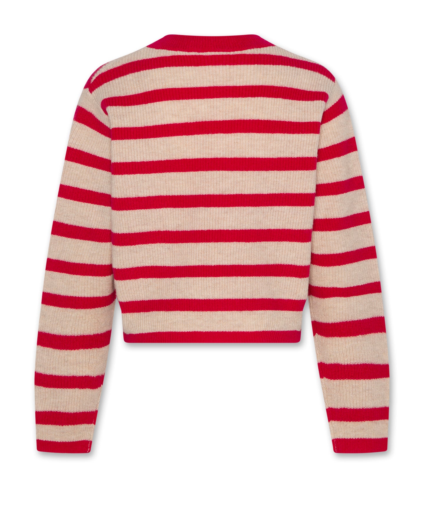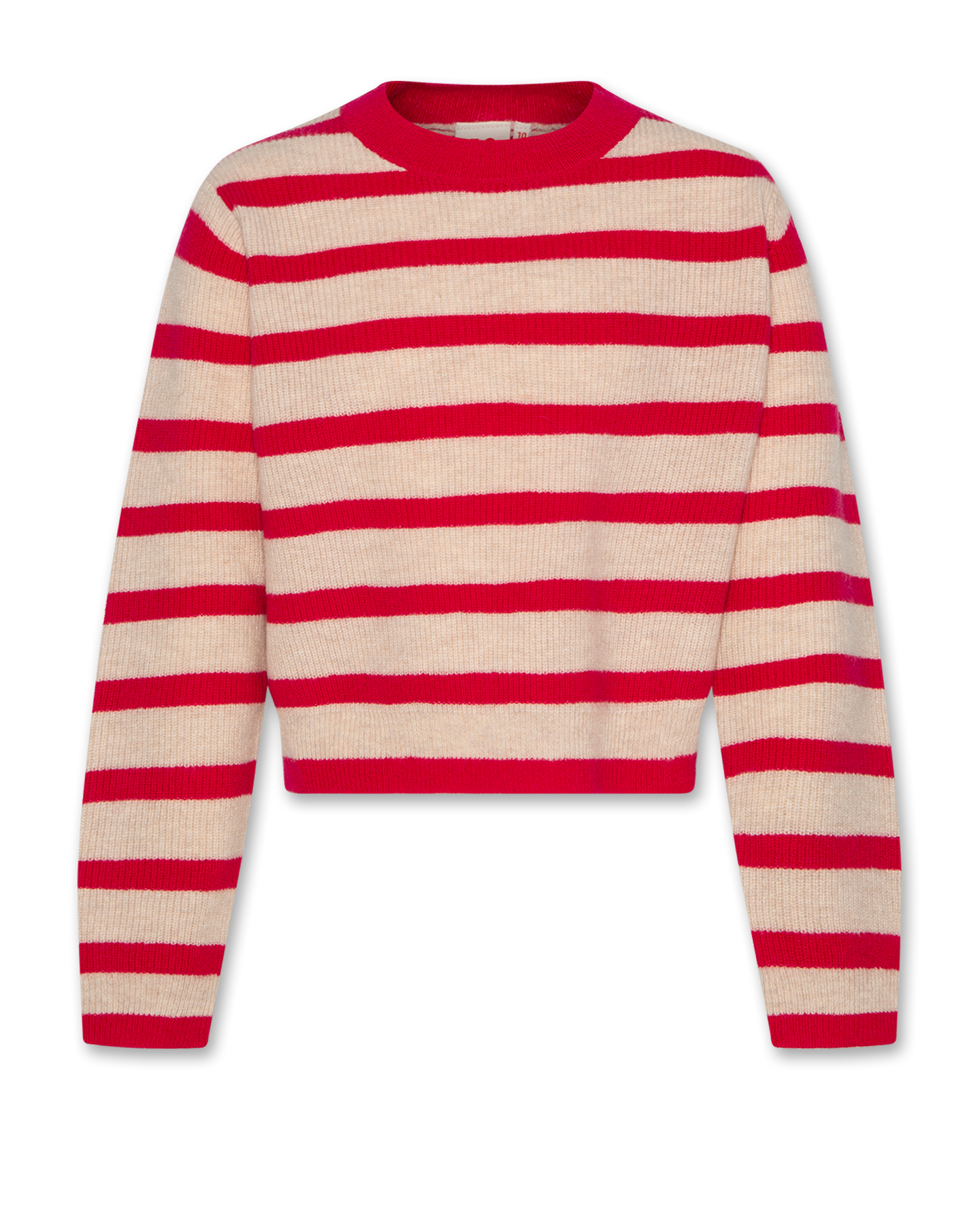 top l/s cropped wool striped sweater - raspberry