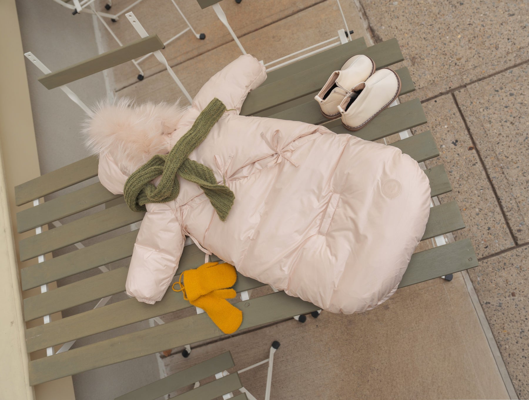 Bondoux snowsuit padded wrap zip with fur hood - champagne