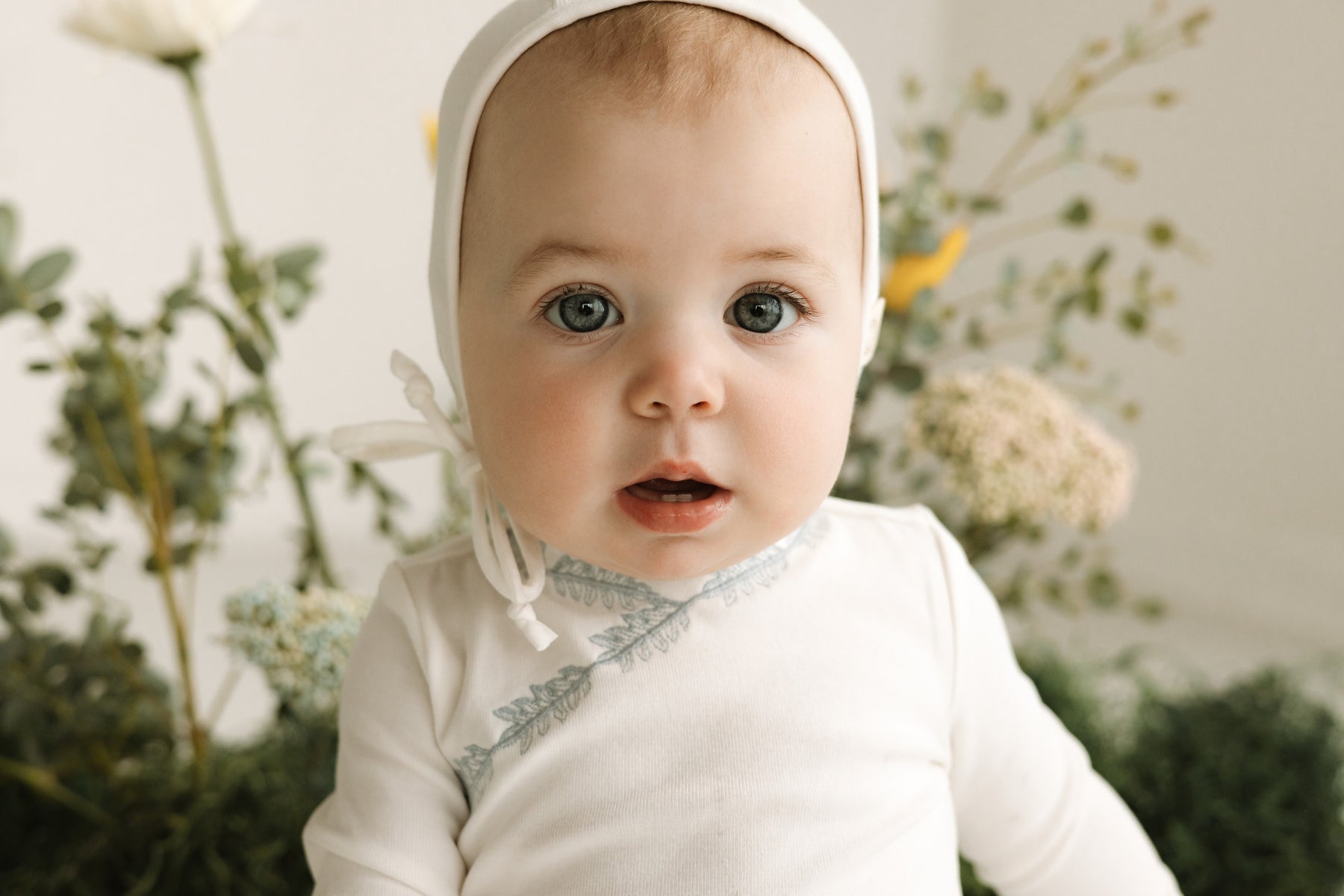 Citrine footie floral edge wrap with bonnet - white/blue