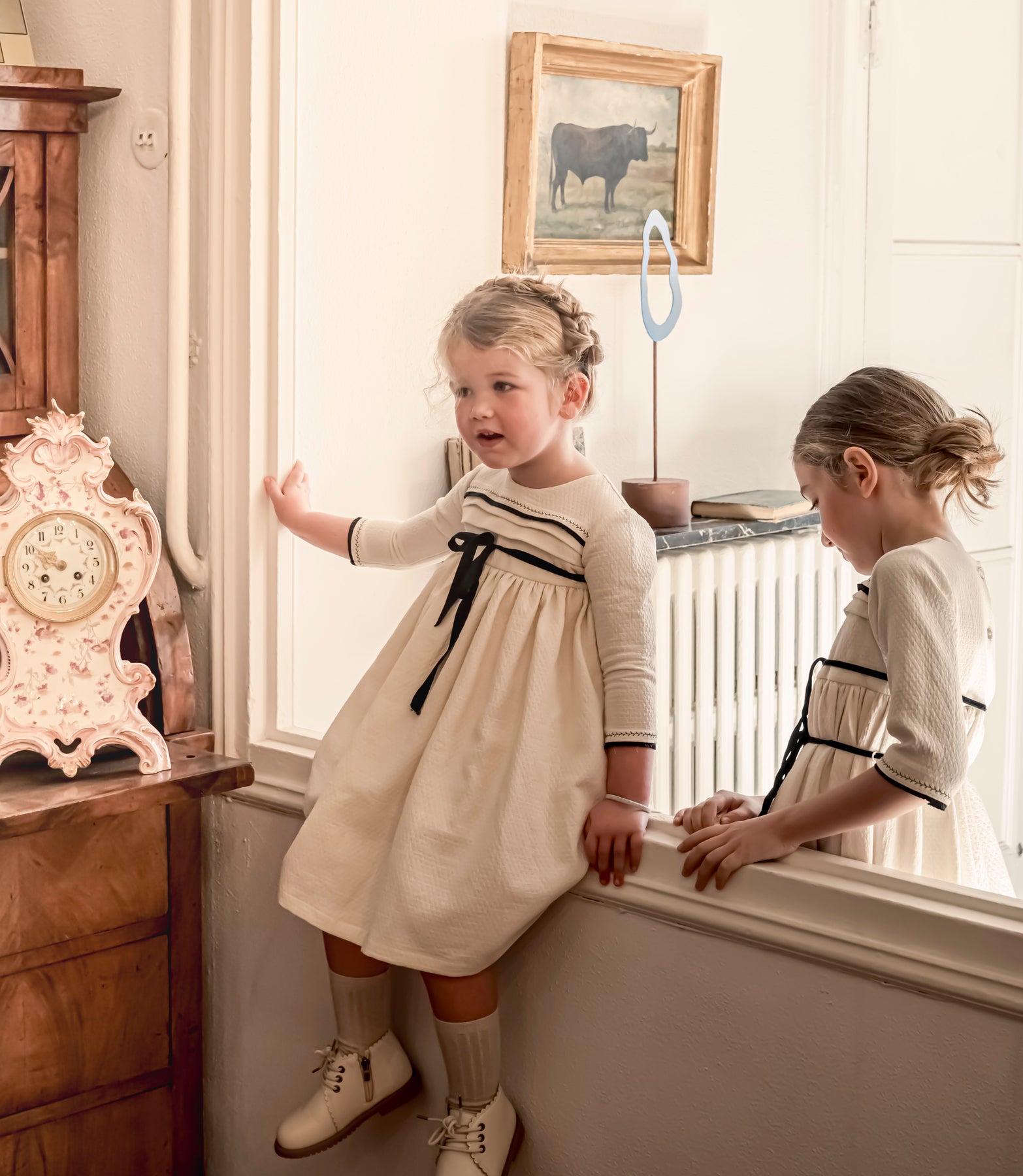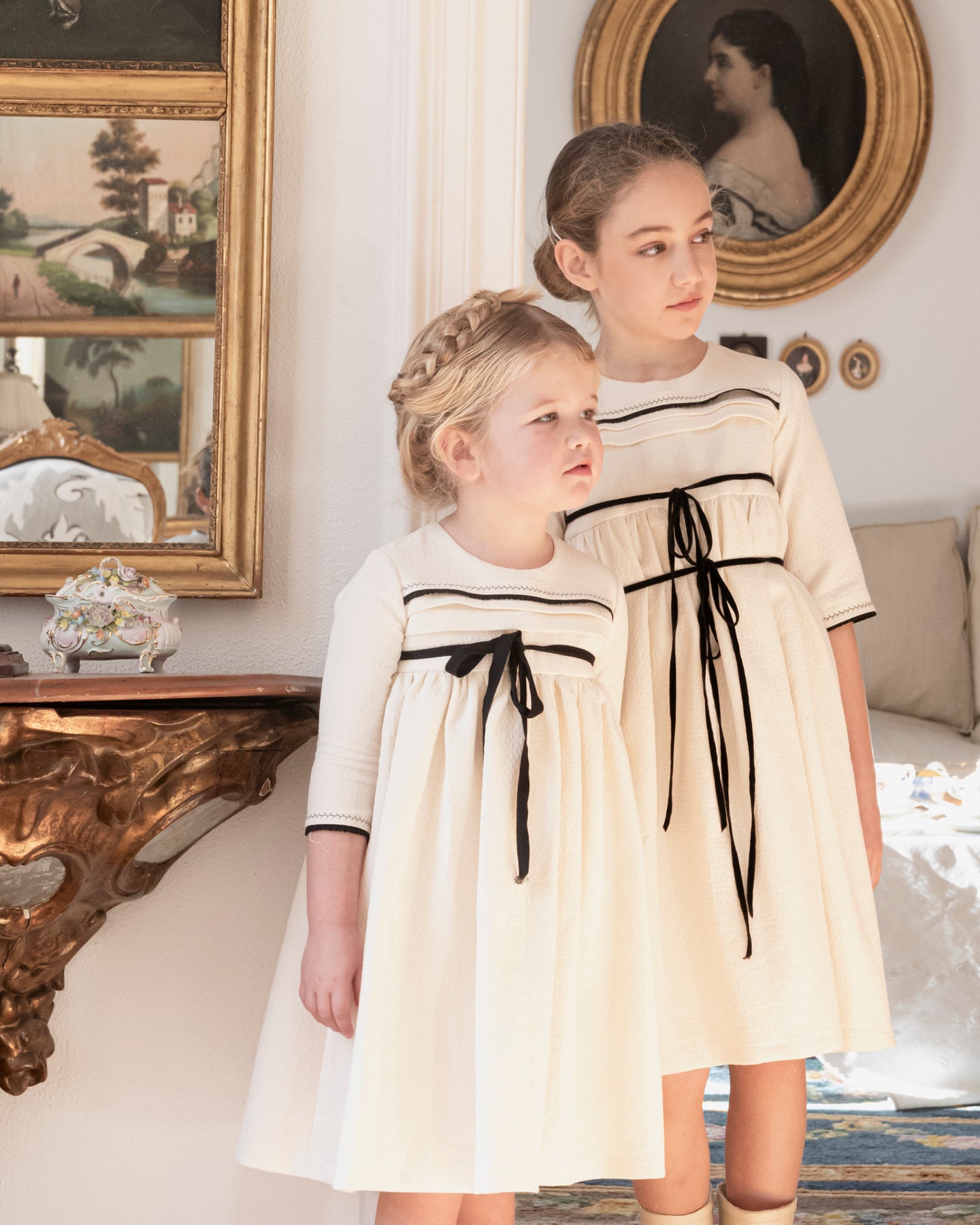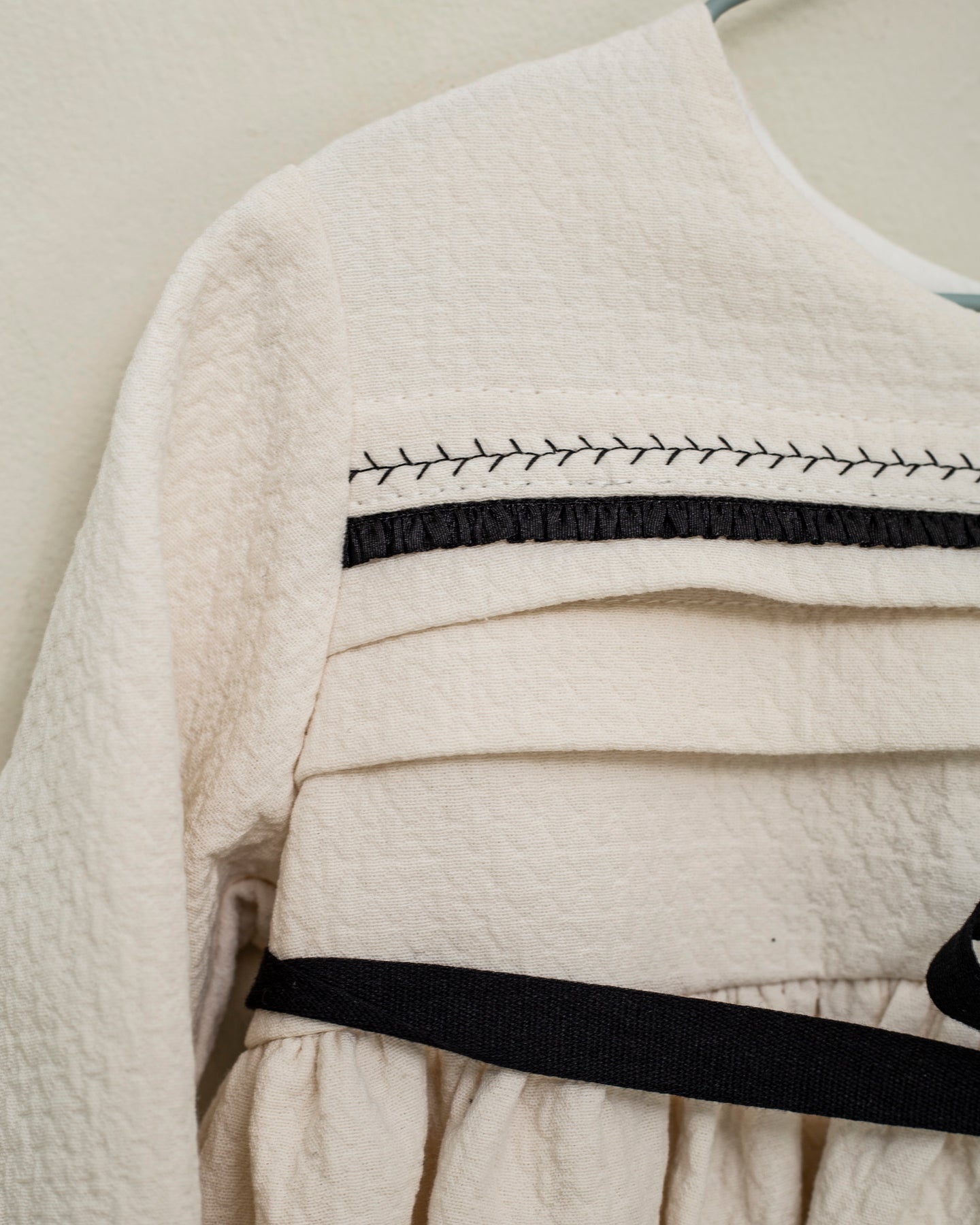 Cosmosophie dress high waisted quilted with waist tie - dolby