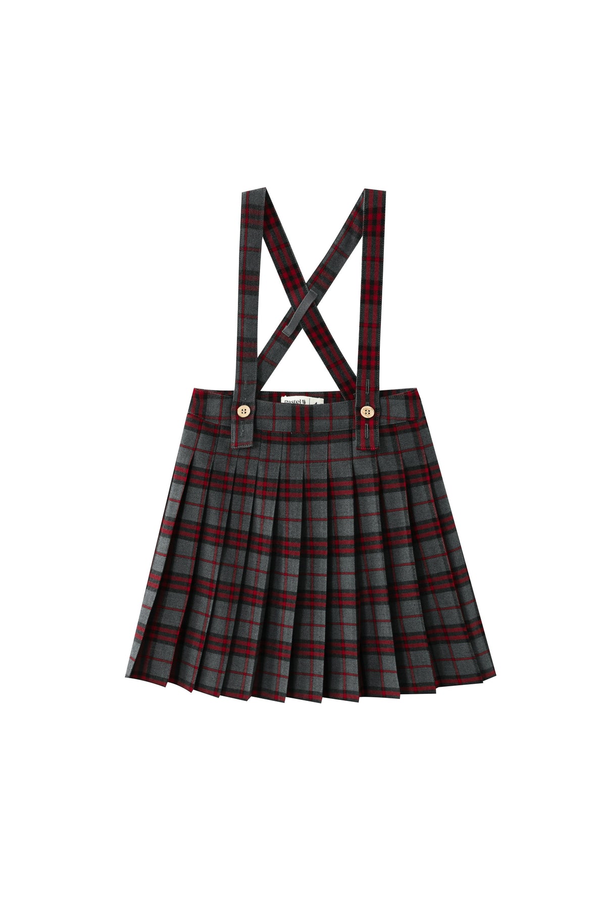 Pastel grey plaid pleated suspender skirt - grey plaid