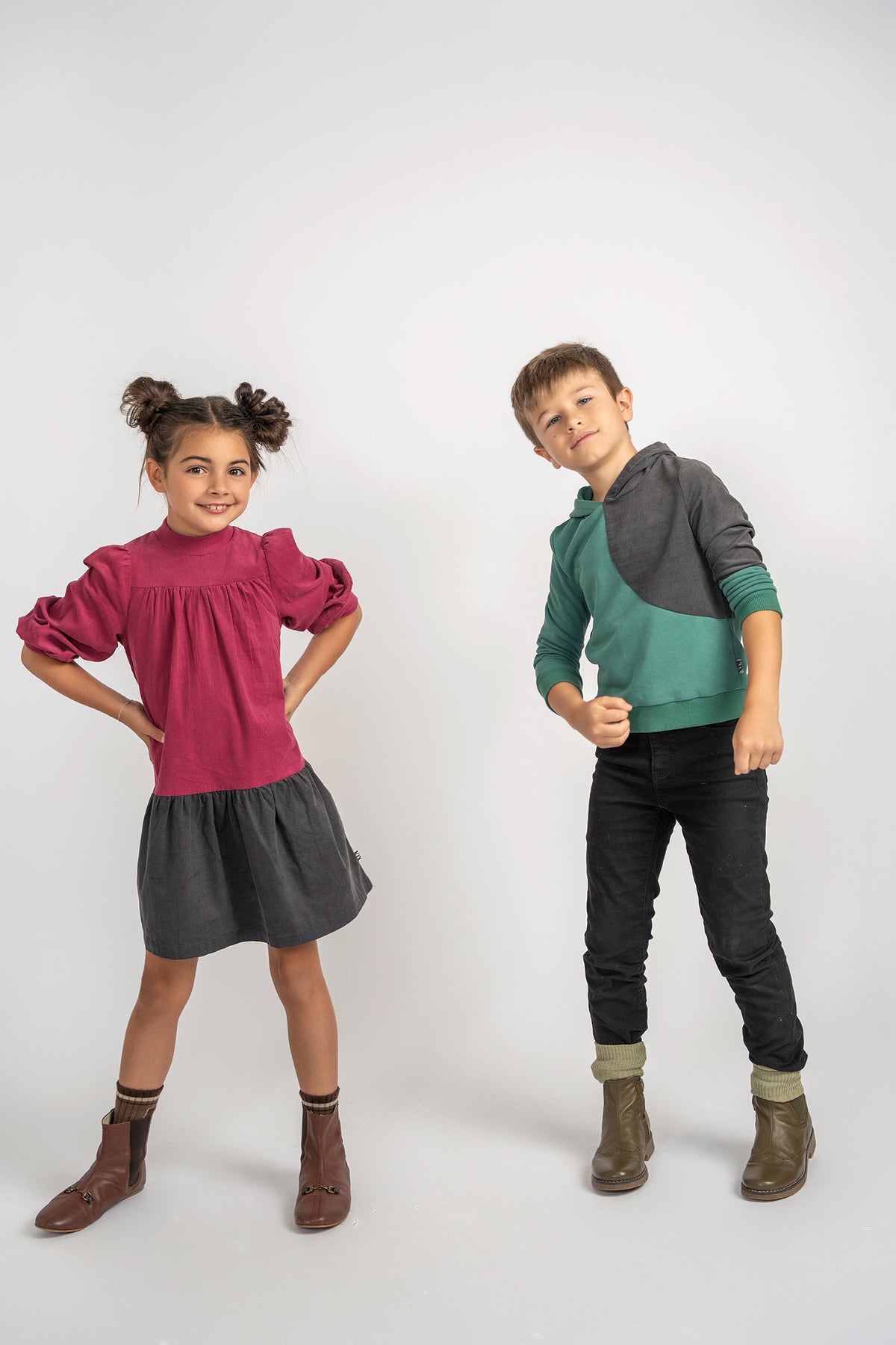 Kix top l/s corduroy color block hooded sweatshirt - blue