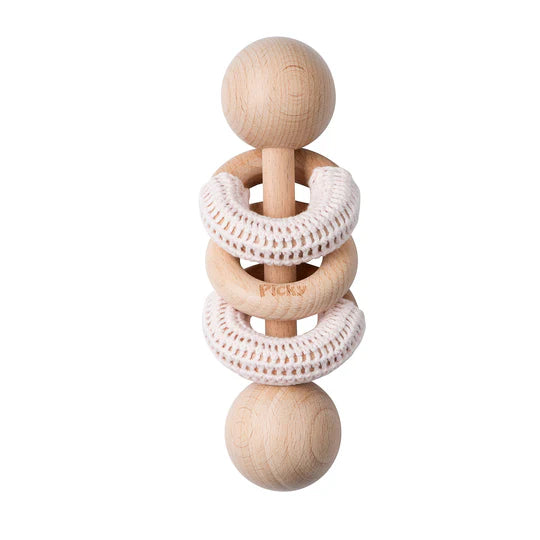 Picky rattle with crochet rings - pink