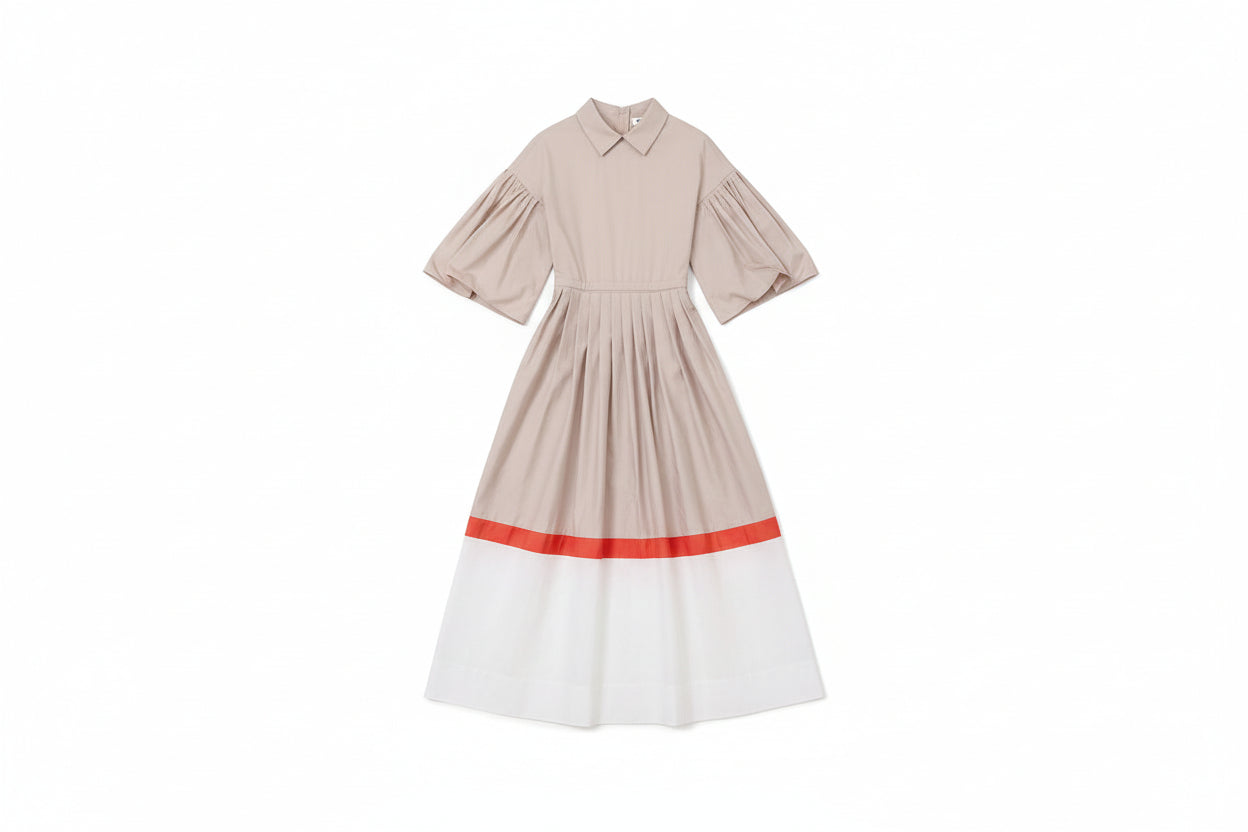 Soir dress maxi shirt style striped hem with puff sleeves - natural