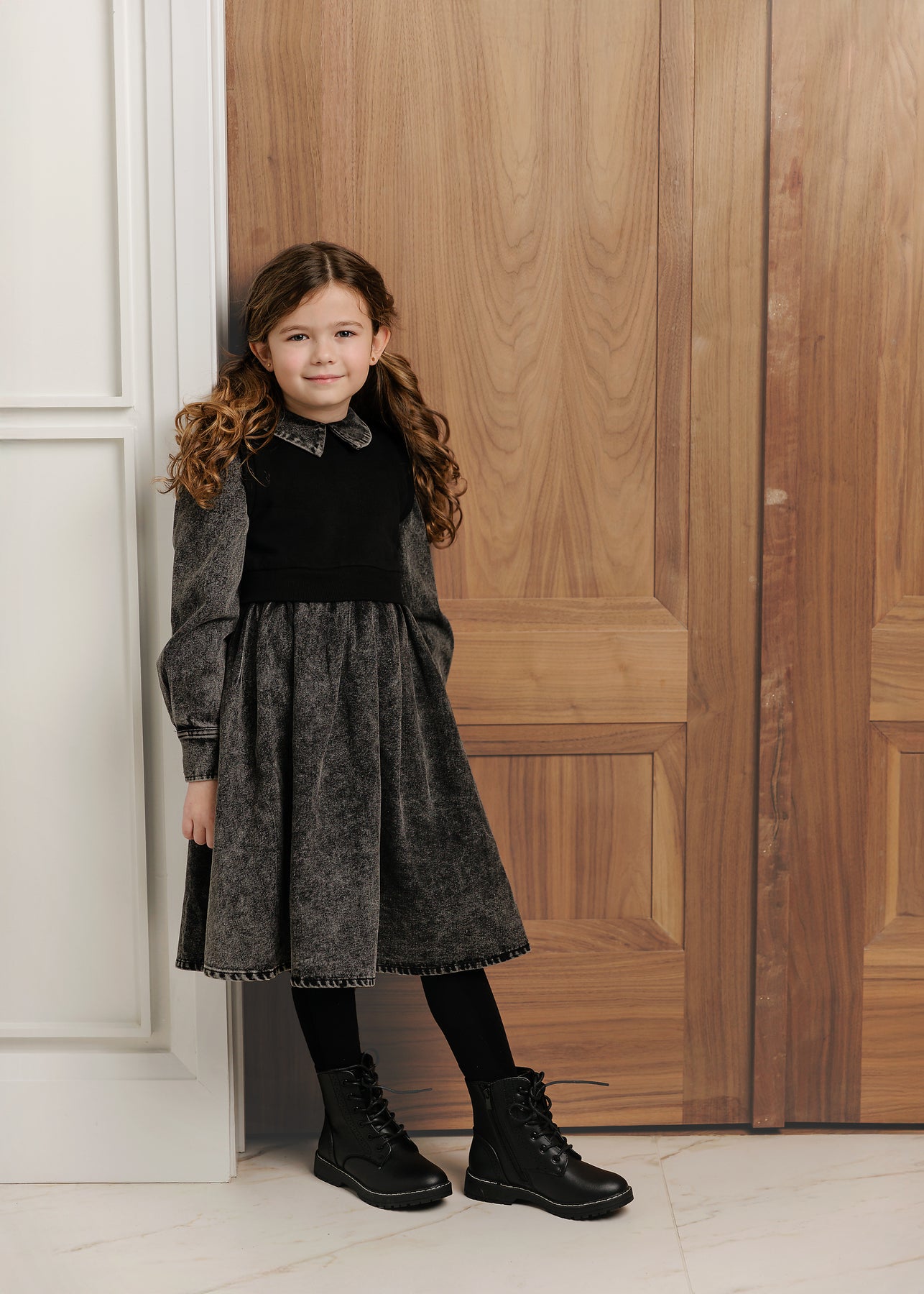 Velvette dress denim collared with vest over - black denim